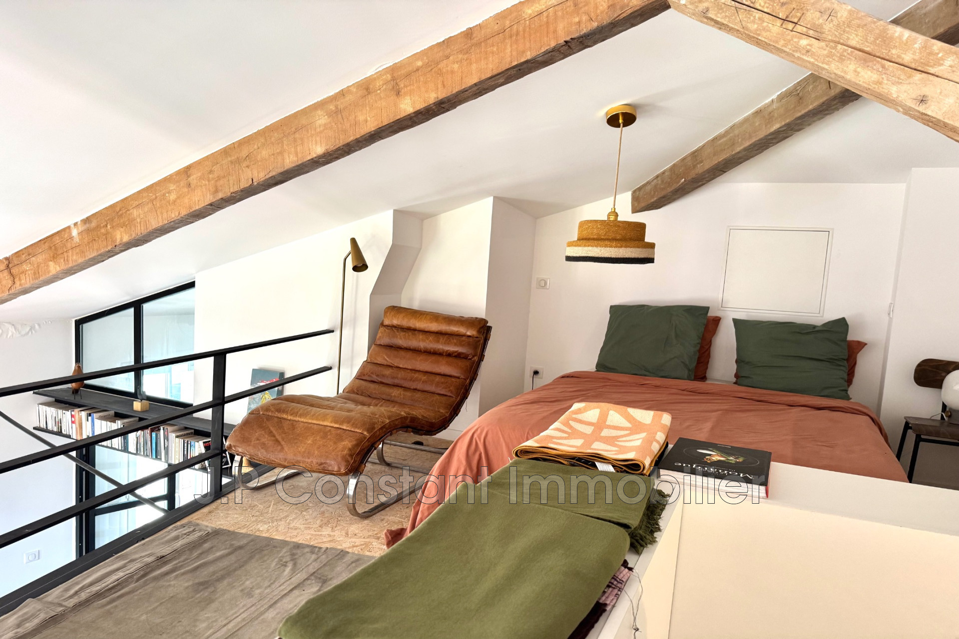 À l'étage, en mezzanine, une seconde chambre sous les toits, qui vous charmera par ses poutres apparentes et sa luminosité.