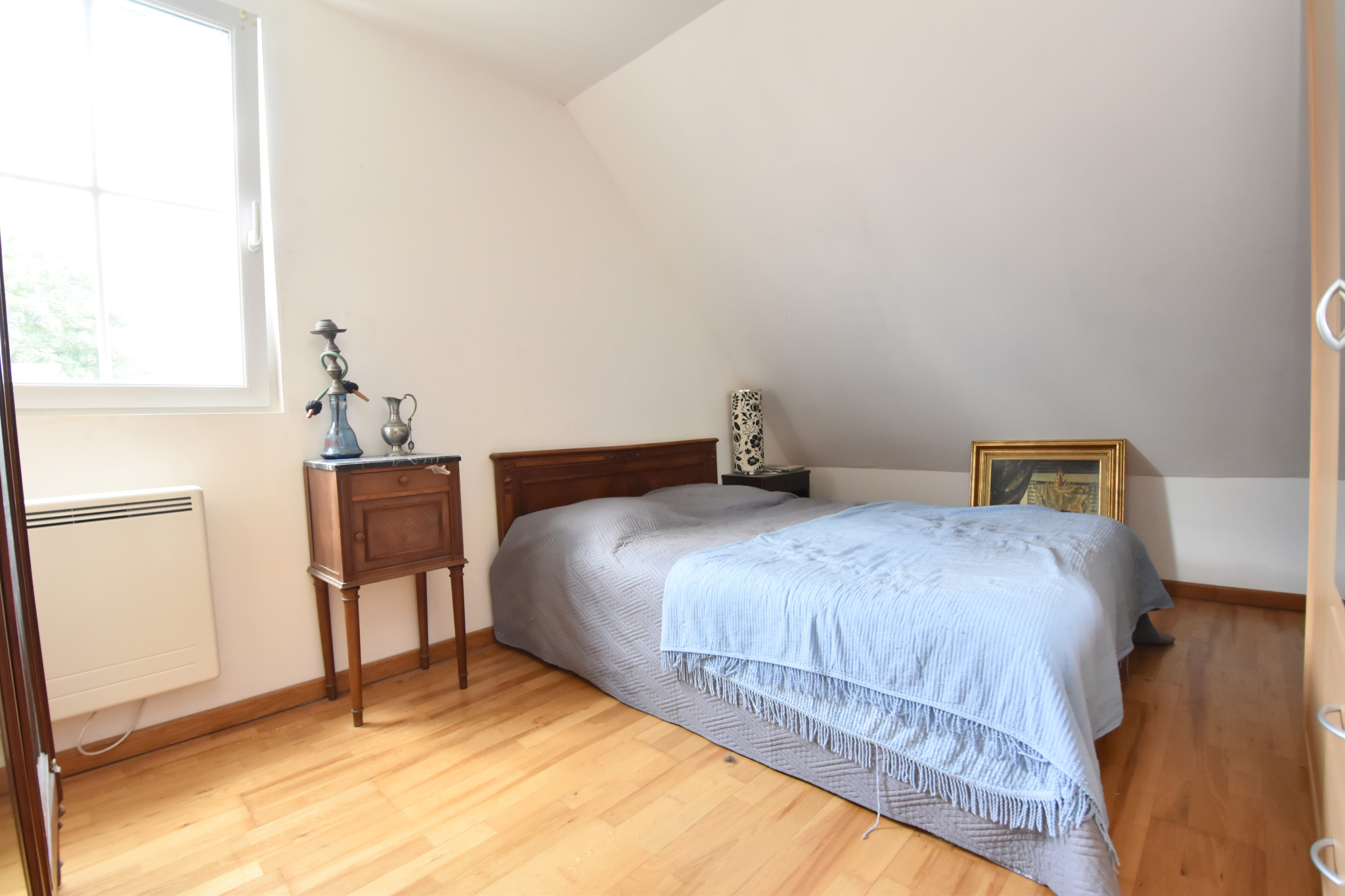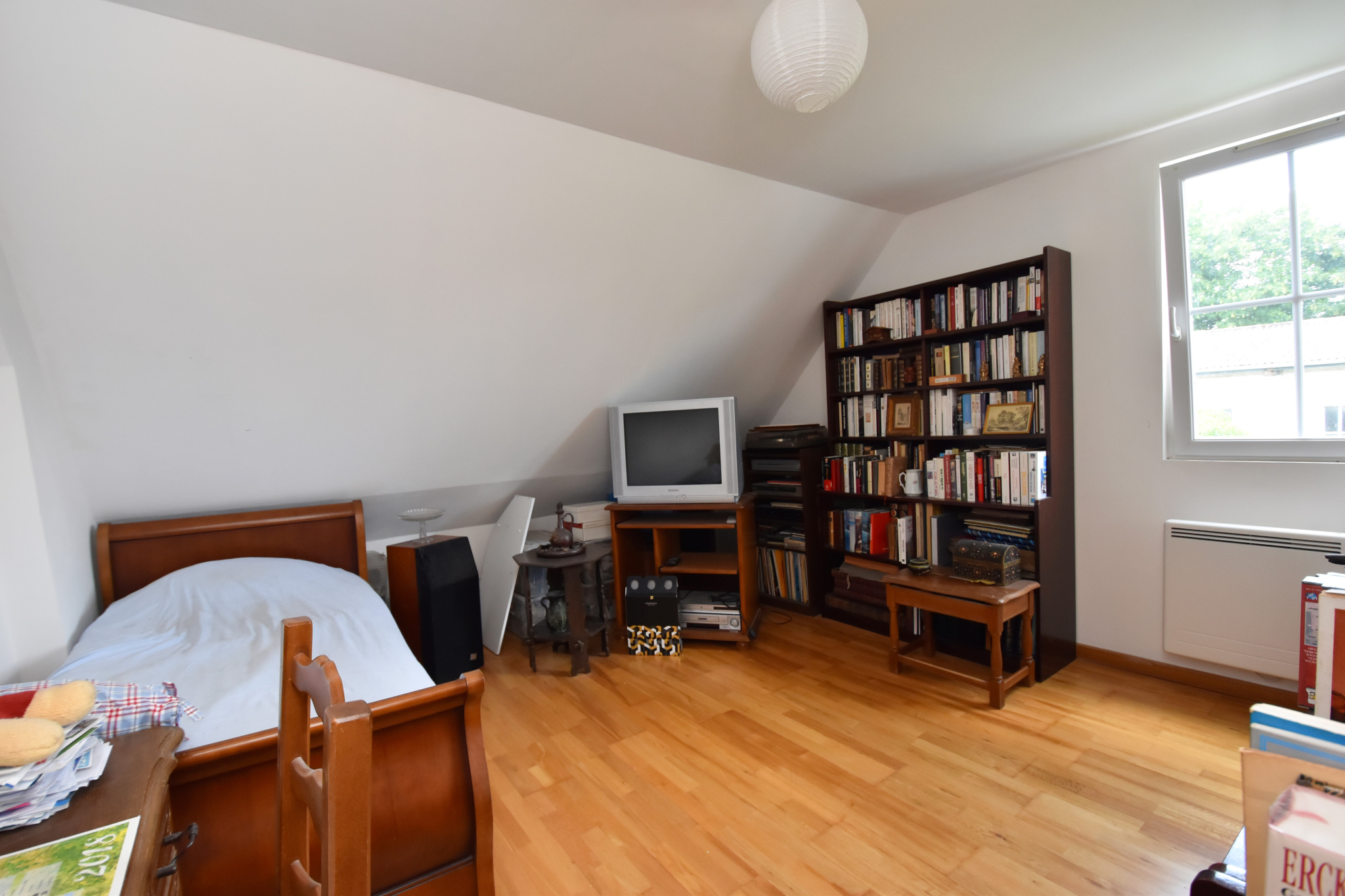- À l'étage : un palier dessert trois chambres confortables (dont une de plus de 15 m2), une grande salle d'eau avec double vasque et second WC. Une lingerie.