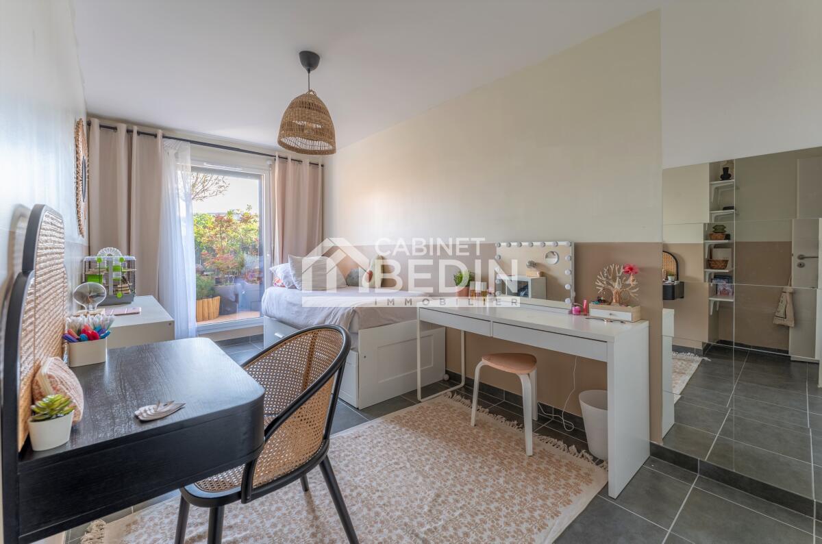 CAUDERAN STEHELIN. Le cabinet Bedin est heureux de vous présenter à la vente ce bel appartement de type T4, situé au 3ème et dernier étage avec ascenseur, dans une résidence de standing datant de 2020. L'appartement se compose d'un séjour lumineux, donnant sur une grande terrasse de 45m² avec une vue dégagée, ainsi qu'une cuisine ouverte neuve et équipée avec un grand comptoir pour les repas en famille. Côté nuit, les 3 chambres profitent toutes d?un accès à la terrasse. Une salle de bains, , un WC et une buanderie complètent cet espace. L'appartement est équipé de la climatisation et du chauffage au gaz, assurant un confort optimal adapté aux besoins de chacun. Il dispose également de 2 places de stationnement privatives. La copropriété est propre, très bien entretenue et accessible PMR. Contactez-nous pour plus d'informations ou pour organiser une visite. . Les informations sur les risques auxquels ce bien est exposé sont disponibles sur le site Géorisques : www. georisques. gouv. fr. Montant estimé des dépenses annuelles d?énergie pour un usage standard : entre 3588 et 3699 Euros/an (année de référence 2015) Bien en copropriété de 131 lots dont 56 lots principaux , Charges annuelles 2200. 00 Euros , Surface Carrez 81. 5m²