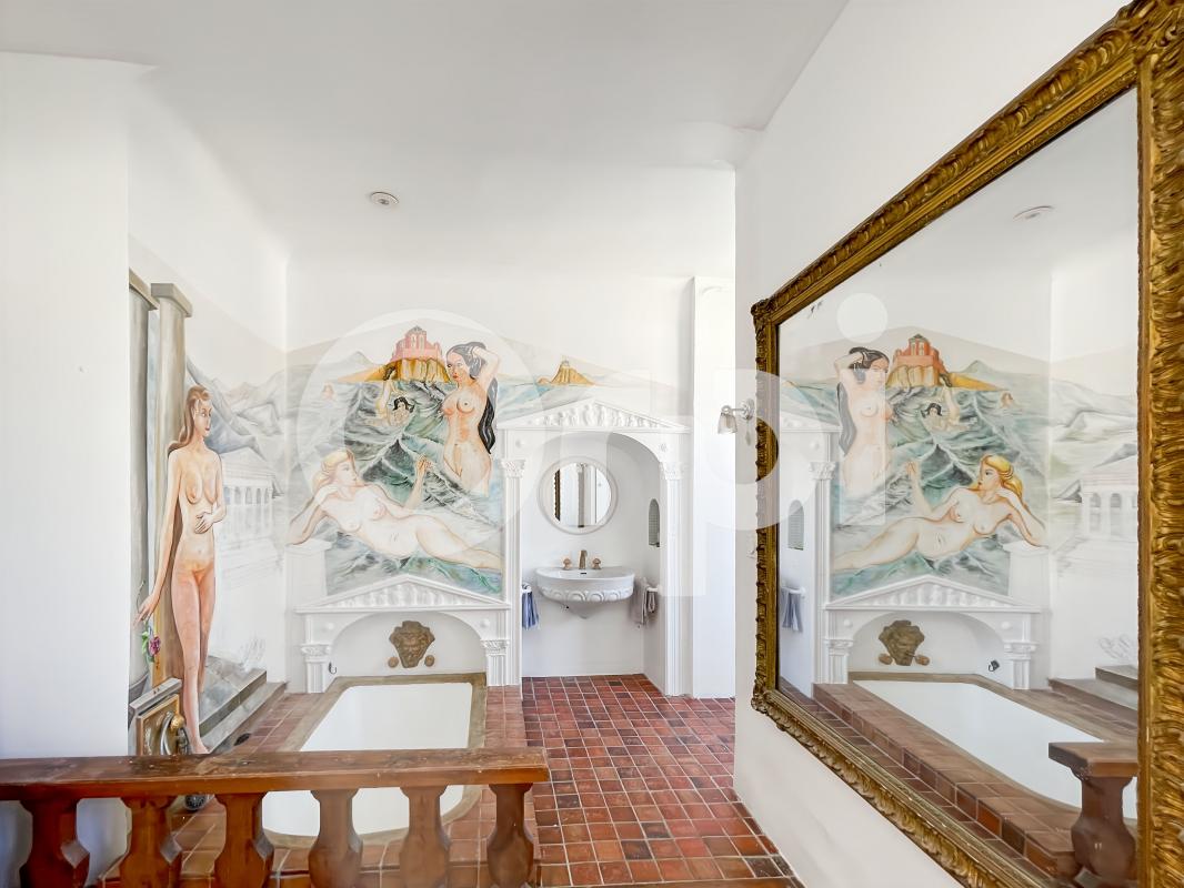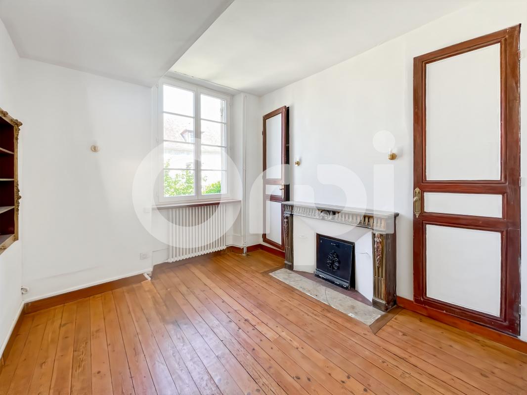 Au rez-de-chaussée, une entrée de miroirs menant à un séjour chaleureux orné de boiseries, avec cheminée et bibliothèques intégrées. Vous y trouverez également une cuisine indépendante aménagée, ainsi qu'une salle de bains avec WC.
