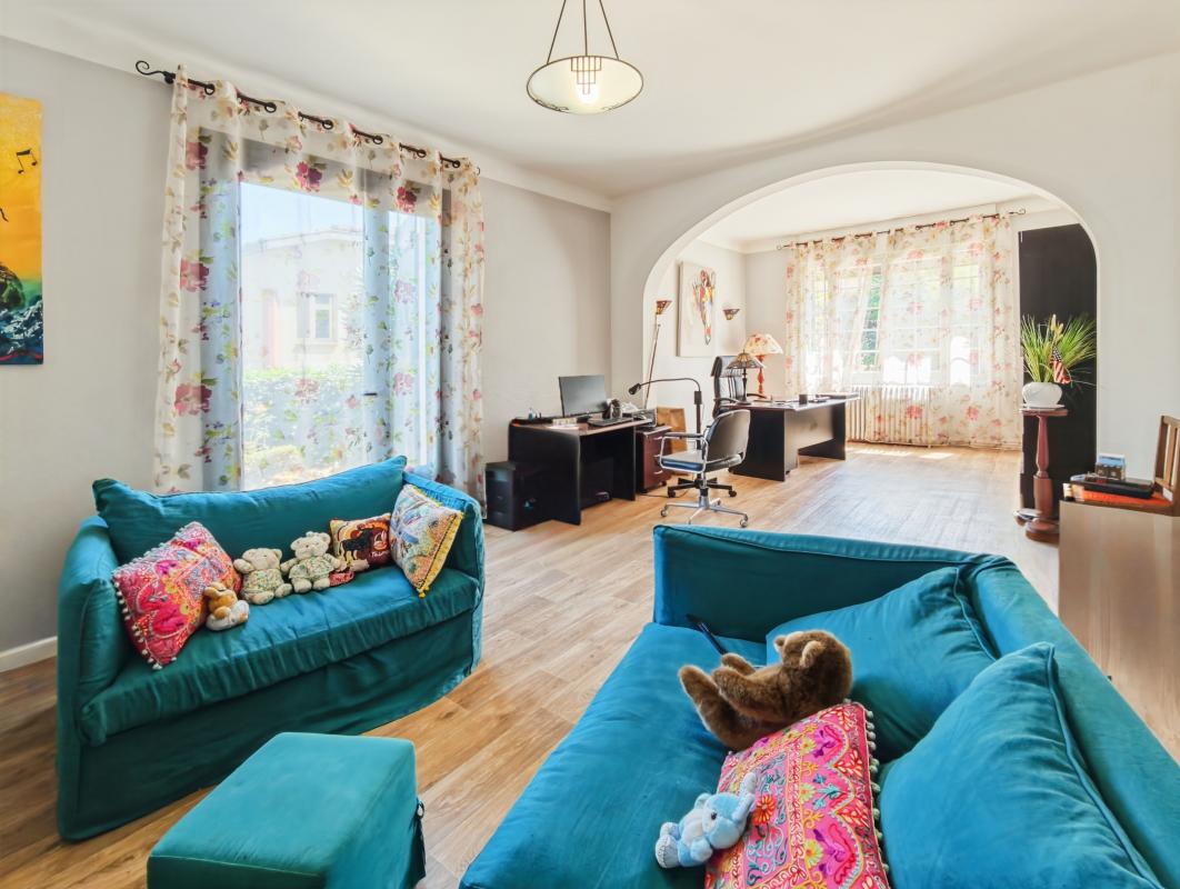Dans son écrin  de verdure, et sur environ 2311 m² de terrain, cette maison cossue dispose de deux doubles séjours, 6 chambres avec trois points d'eau, 2 WC...