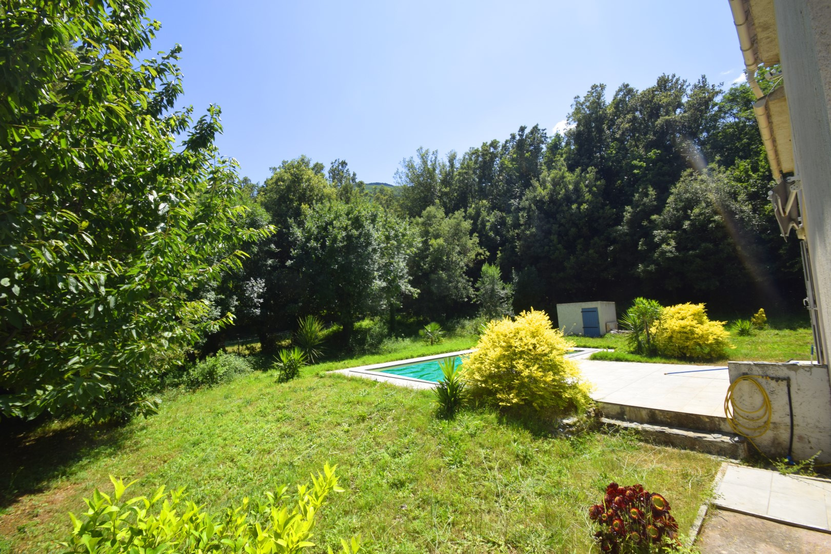 Terrasses spacieuses et piscine entourée de verdure