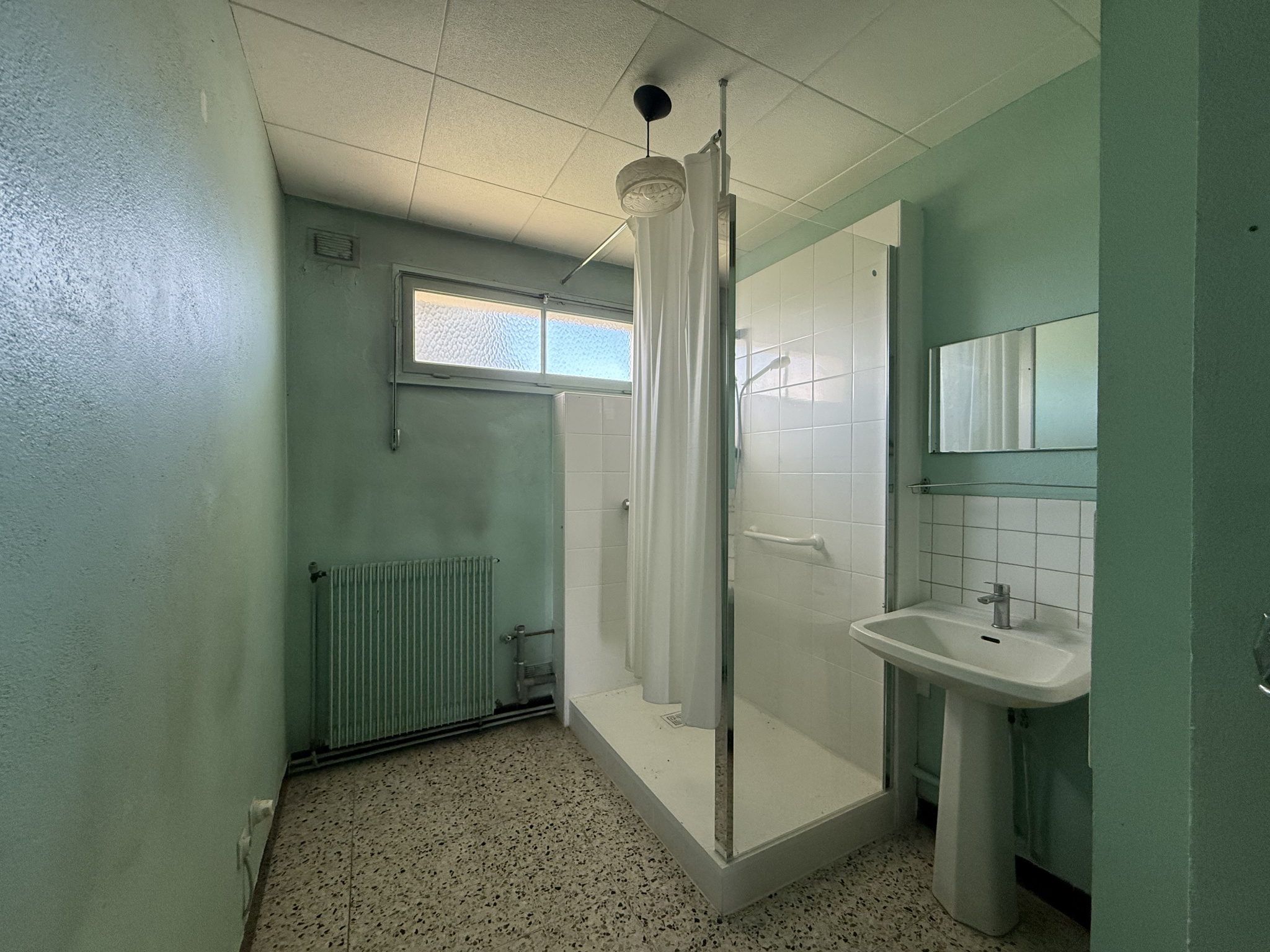 Une salle de douche refaite il y a 3-4 ans avec lavabo. Trois chambres de 11.49 m2, 12.03 m2 et 10.50 m2.