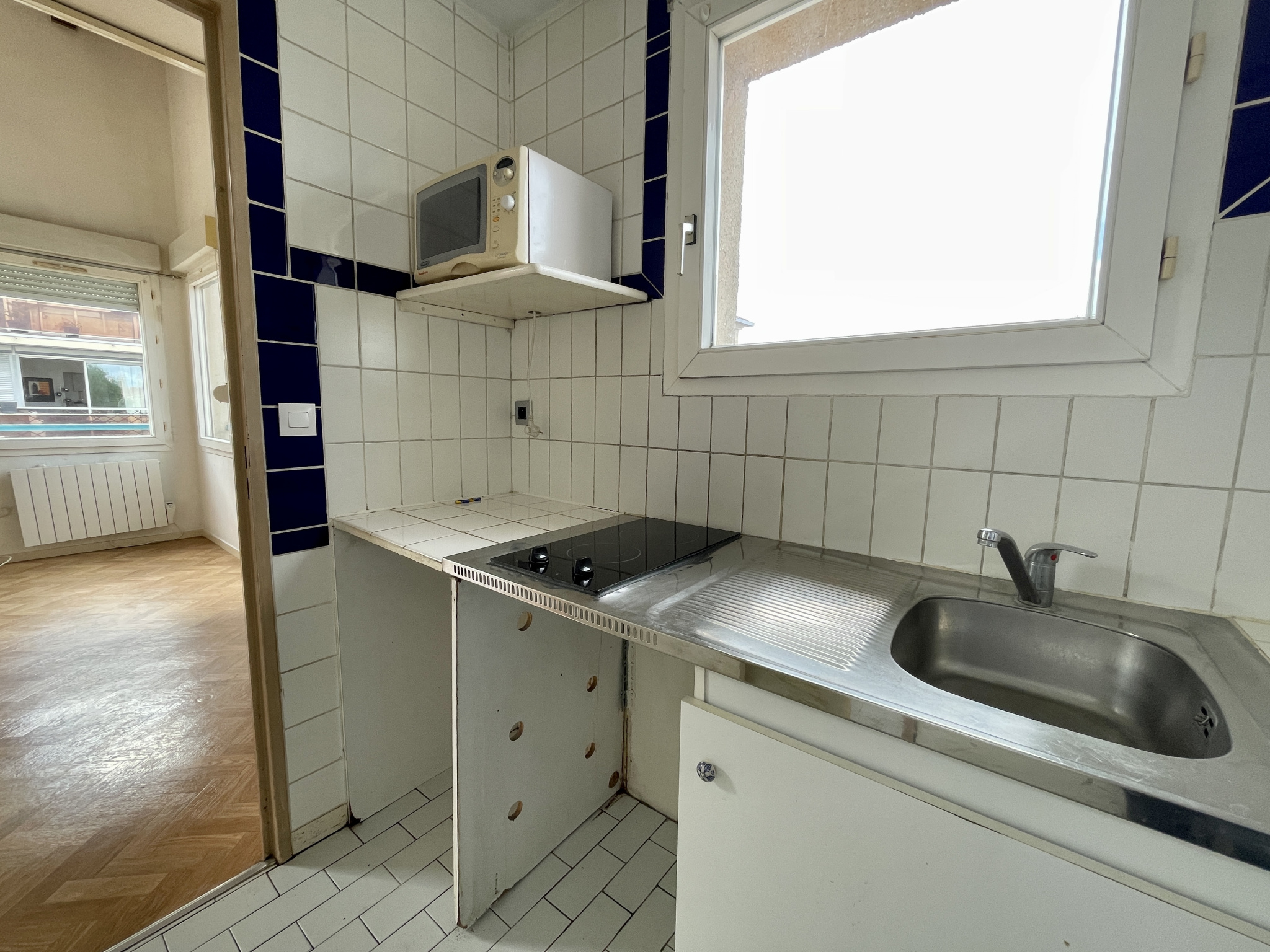 Le bien développe une entrée avec rangements, menant un lumineux salon-séjour avec double exposition et belle hauteur sous-plafond. Vous profiterez également d'une kitchenette indépendante dotée d'un cellier. Salle de bains wc.