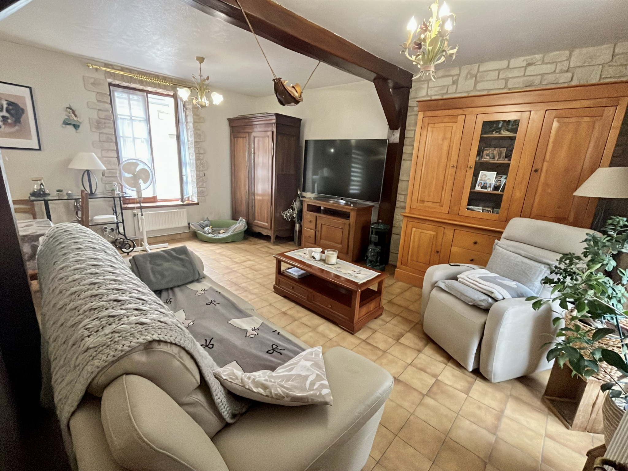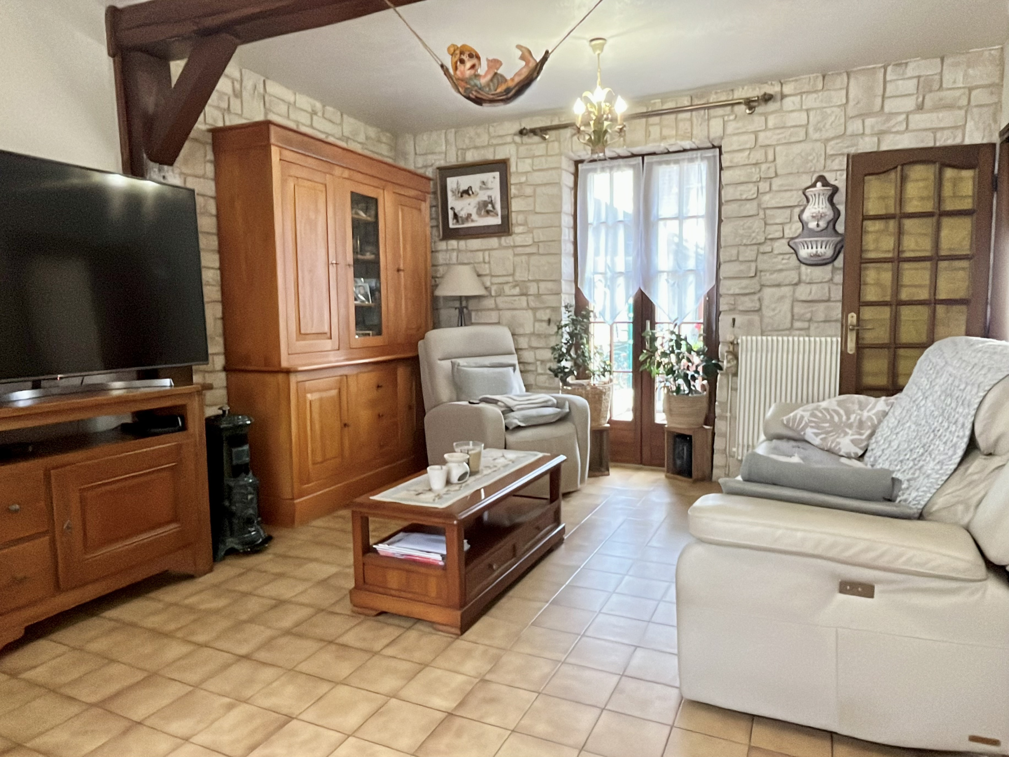 Chauffage par chaudière à condensation au gaz de ville, fenêtres double vitrage, raccordé au tout à l'égout, fibre optique.