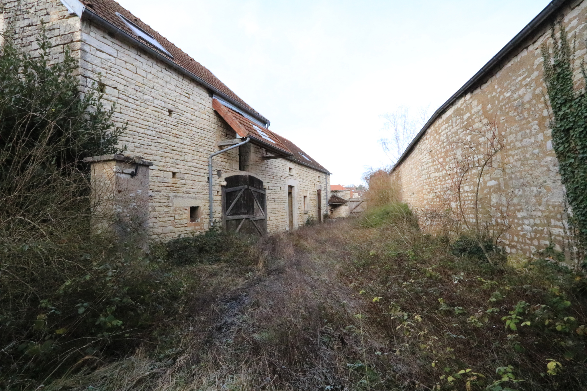 Dépendances : grange attenante, bûcher, atelier, cave sous la maison, puits (récupération d'eaux pluiales), jardin clos