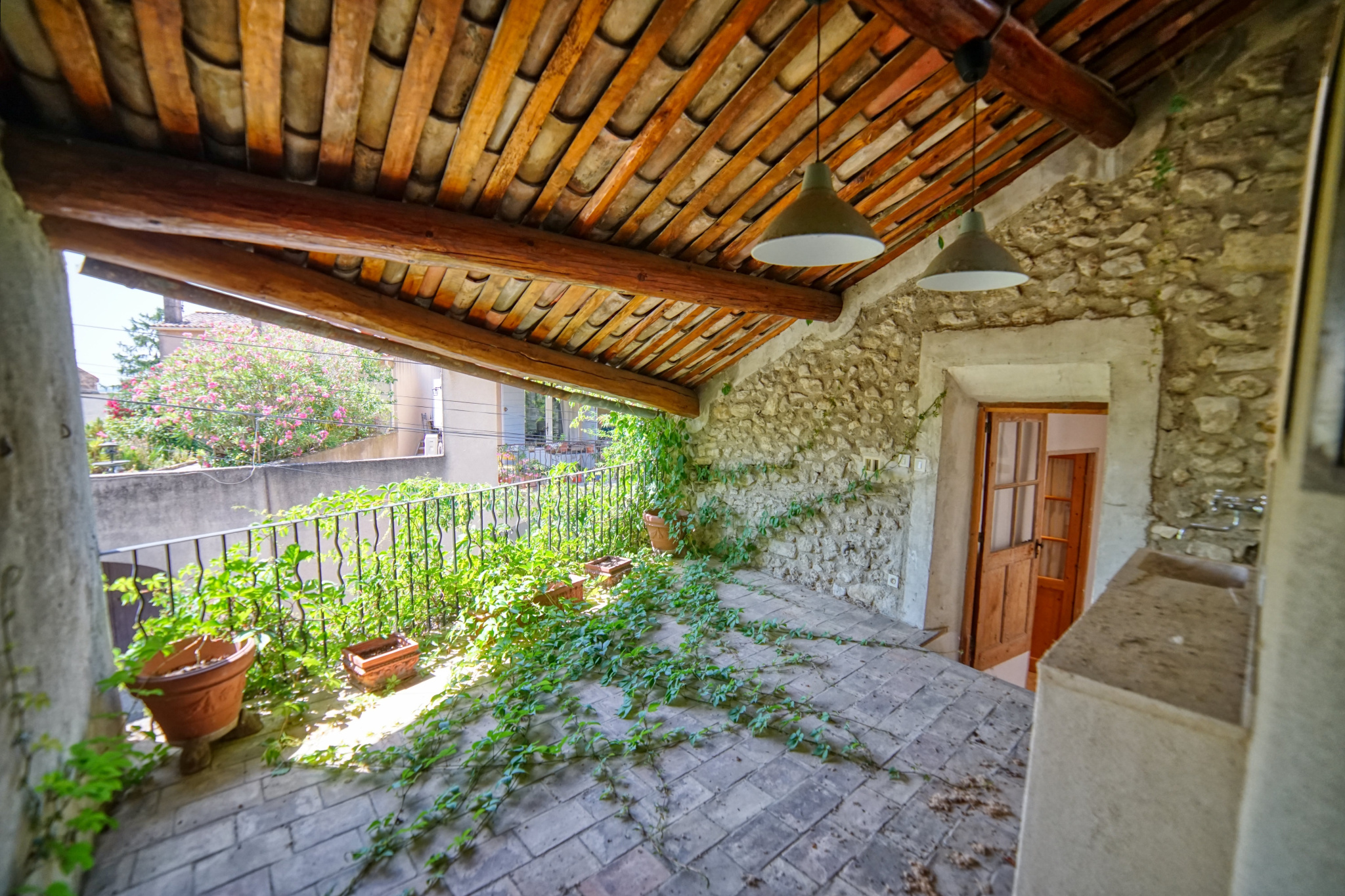 Charmante maison de village en pierre de 146 m2 entièrement rénovée, offrant une belle luminosité grâce à son agencement traversant sur 3 niveaux. Elle se compose d'un garage, deux caves et une buanderie, idéal pour le rangement et le confort au quotidien. Au premier niveau, vous découvrirez une cuisine ouverte sur une salle à manger conviviale, une salle d'eau ainsi qu'un WC indépendant. La maison dispose de deux chambres ouvertes, ainsi qu'un studio indépendant comprenant une kitchenette, un coin couchage, une petite mezzanine, une salle d'eau et un WC. Pour profiter des beaux jours, une terrasse couverte vient compléter ce bien, parfait pour vos moments de détente en extérieur.