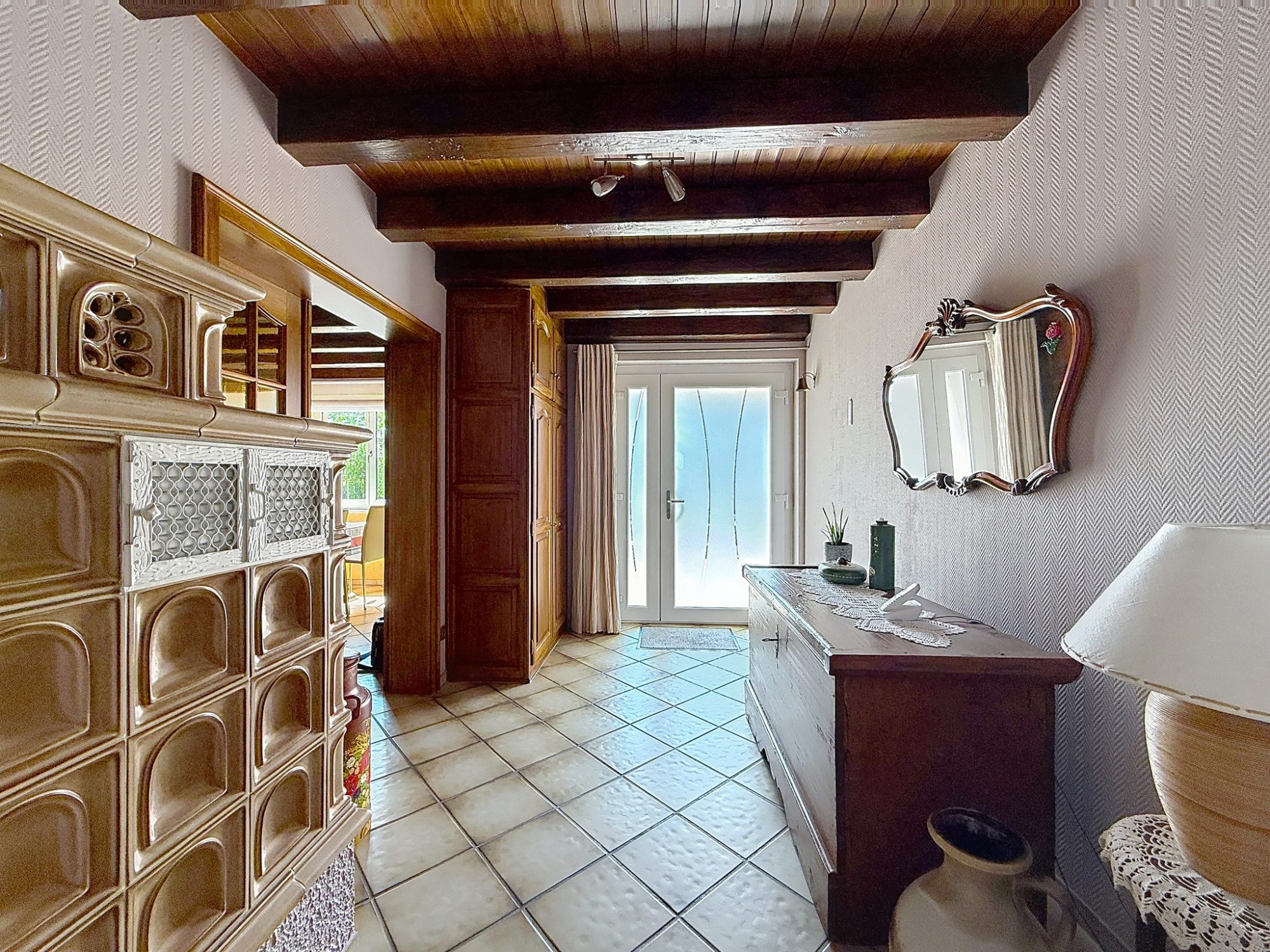 Construction et matériaux de qualités, chauffage par pompe à chaleur EAU / EAU complété par un kachelofe, triple vitrage - combles isolés - Panneaux solaires.