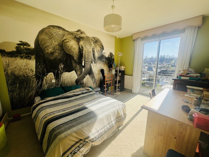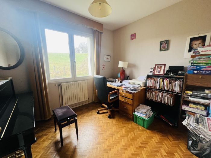 Elle se compose d'une entrée desservant une cuisine équipée et aménagée, une spacieuse pièce de vie avec insert, deux chambres, un bureau et une salle de bains avec douche et baignoire ainsi qu'un wc séparé. L'étage tout autant spacieux propose deux chambres, une salle d'eau avec wc et deux greniers à finir d'aménager. Elle dispose également d'un sous-sol total agrémenté d'une cave, chaufferie et d'un garage 2 véhicules.