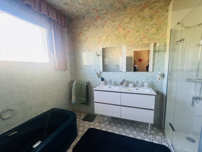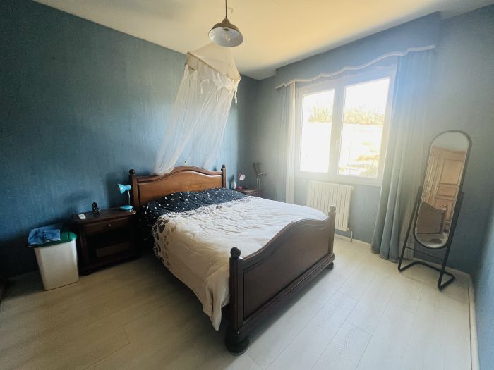 Cette magnifique maison d'environ 141m² habitable, située dans un quartier agréable de la ville, vous offre une vie de plain pied, un agréable terrain plutôt plat, et de beaux volumes. Environnement au calme, en impasse, à deux pas des commodités et des axes autoroutiers.