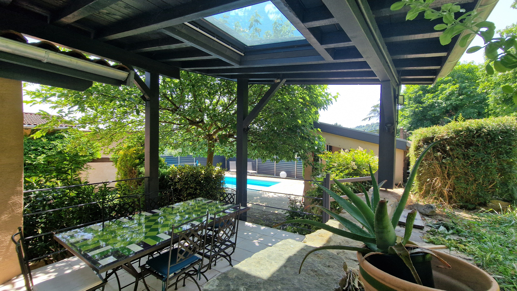 La piscine est parfaitement exposée avec son poolhouse et sa terrasse. La propriété allie le charme des pierres dorées, le cachet, la luminosité et un aménagement extérieur comme une invitation aux vacances sous le ciel de Provence.
