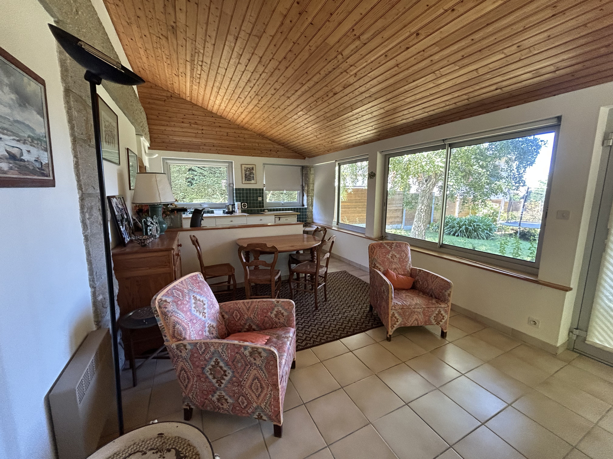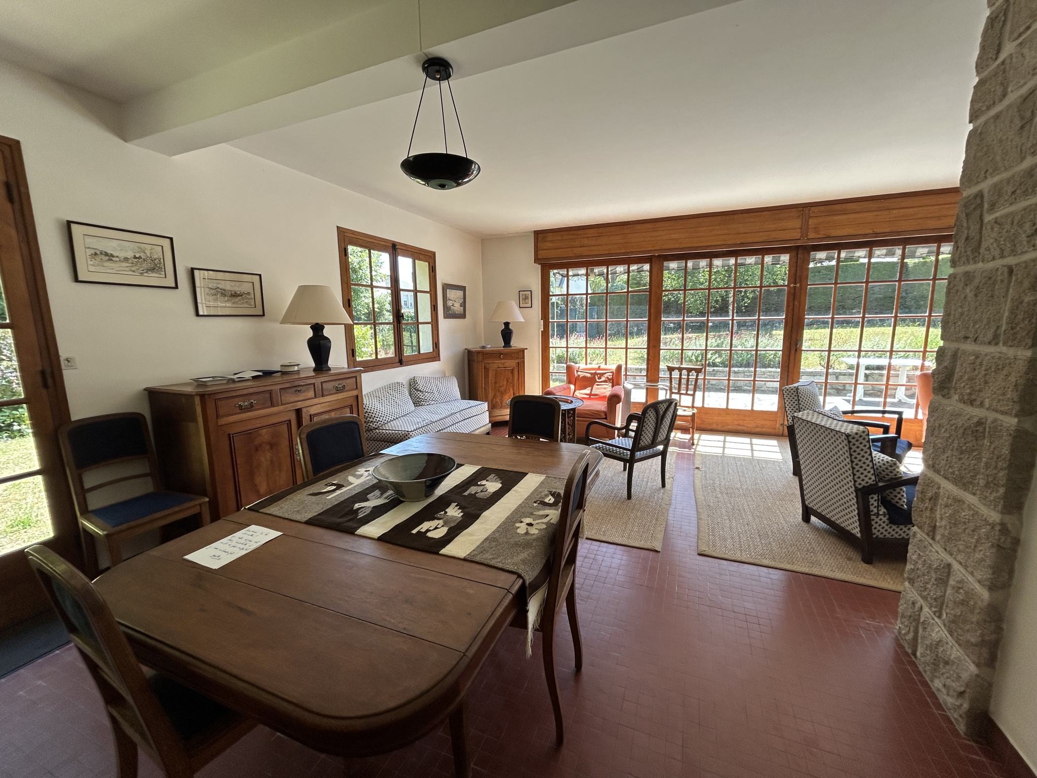 AIS SAINT CAST LE GUILDO - Située dans un environnement calme et prisé de la station balnéaire de Saint-Cast-le-Guildo, cette villa spacieuse est édifiée sur un terrain de 1 465 m2 et offre de très beaux volumes pour accueillir famille et amis en toute sérénité. Dès l'entrée, vous découvrirez un vaste salon-séjour lumineux ouvrant sur une terrasse bien exposée, une cuisine indépendante, ainsi qu'un second séjour/véranda avec une seconde cuisine, idéal pour recevoir ou créer un espace indépendant. Deux chambres, une salle d'eau et un WC complètent ce niveau. À l'étage, la maison dispose de cinq chambres, d'une salle de bain, d'un espace douche et d'un WC, offrant ainsi tout le confort nécessaire pour une grande famille ou un projet de résidence secondaire avec capacité d'accueil. Le jardin arboré, la proximité de la mer et des commerces à pied font de cette maison un bien rare sur le marché.