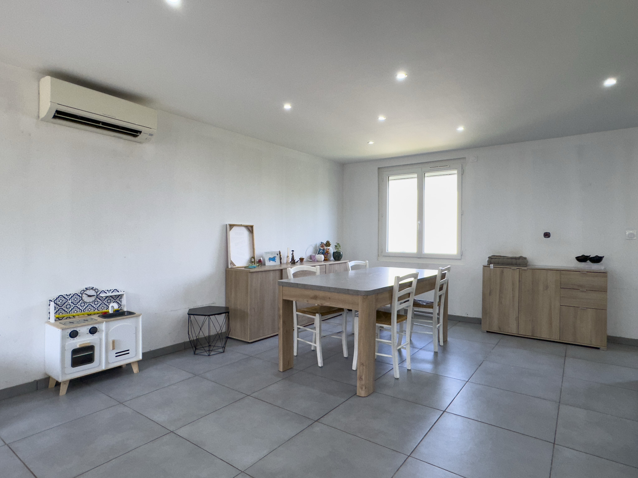 À l'étage, vous profiterez d'une pièce de vie lumineuse de 50m2 environ avec cuisine équipée et climatisation réversible.