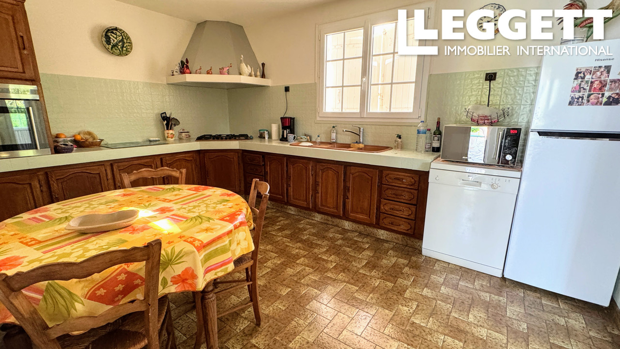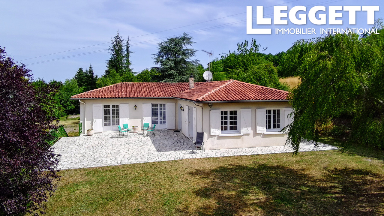 A38146SHH16 - Nichée derrière une généreuse terrasse exposée plein sud de 90 m², cette maison bien entretenue et solidement construite offre un confort de vie de plain-pied dans un cadre paisible, à seulement deux minutes de l'animée ville de marché de Chalais.