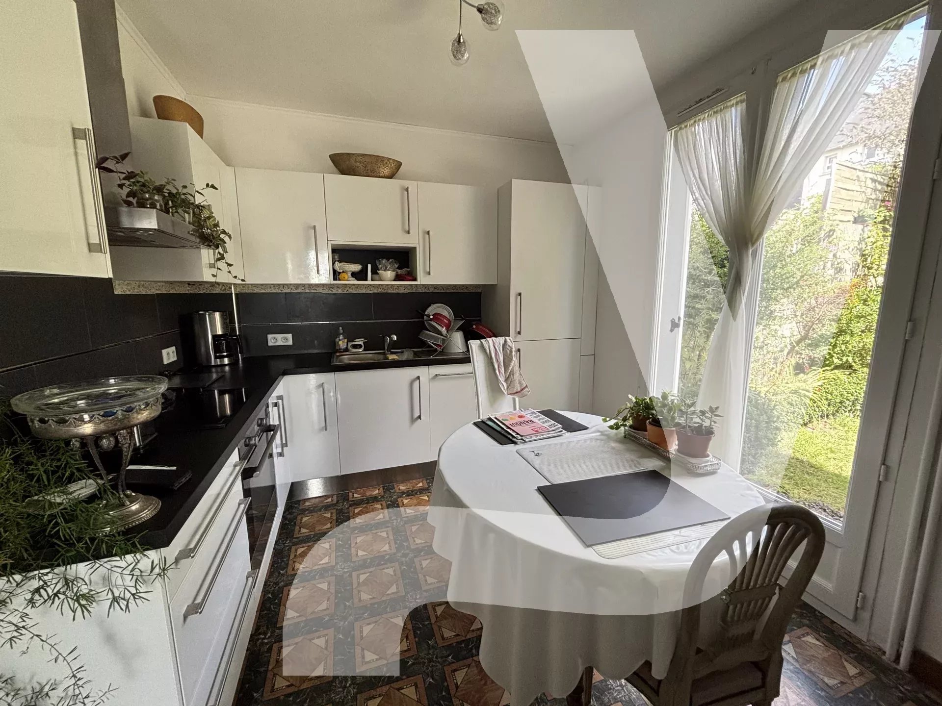 La cuisine donne accès à une terrasse ensoleillée, parfaite pour profiter des beaux jours en toute tranquillité.