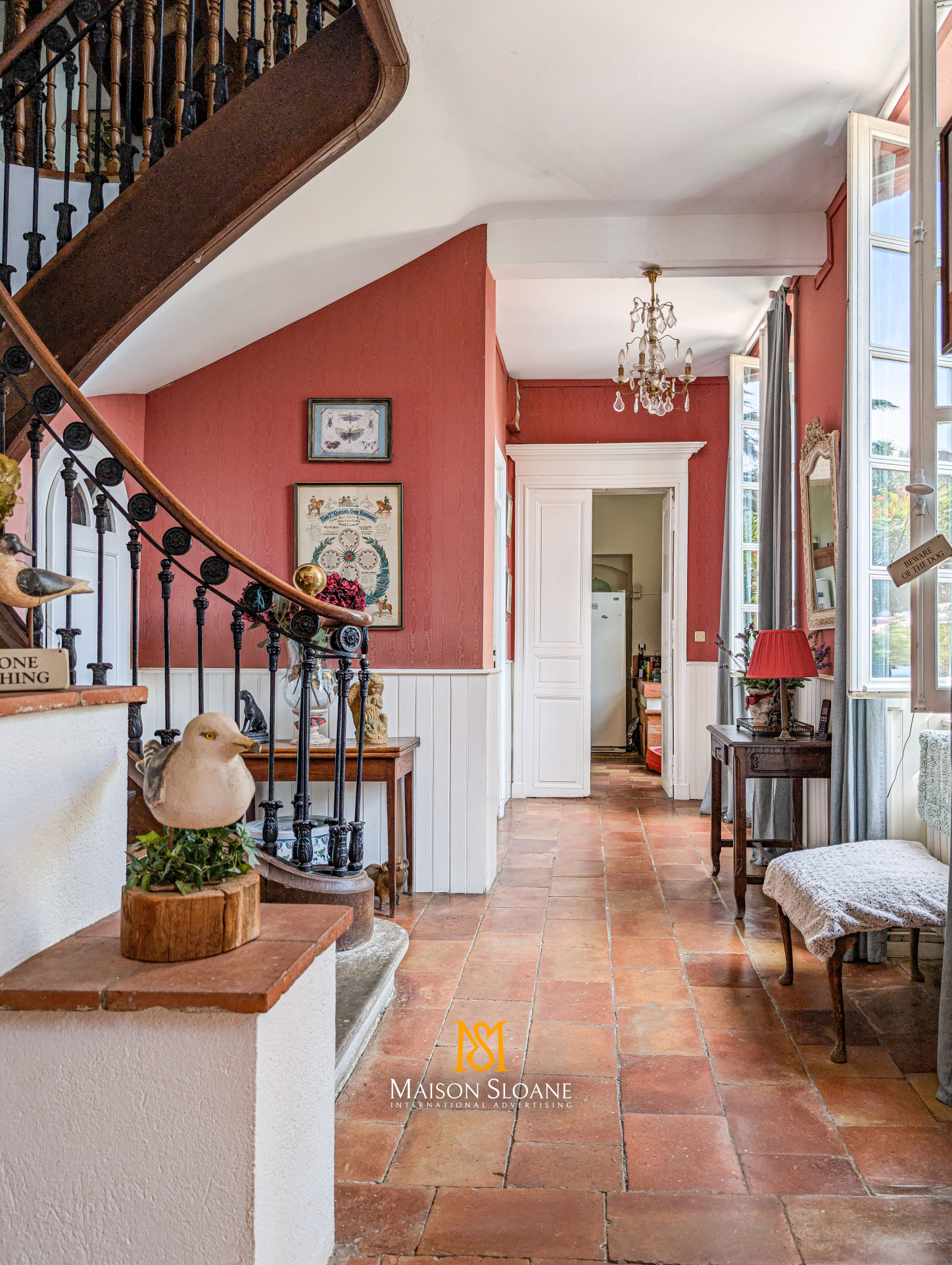 Nichée sur un terrain paysager de 7 000 m2 avec de grands arbres matures, cette élégante maison de maître en brique rouge offre un savant mélange de charme d'époque, de confort moderne et de beaux volumes habitables, à seulement 30 minutes de Toulouse et 4 minutes de Nailloux.