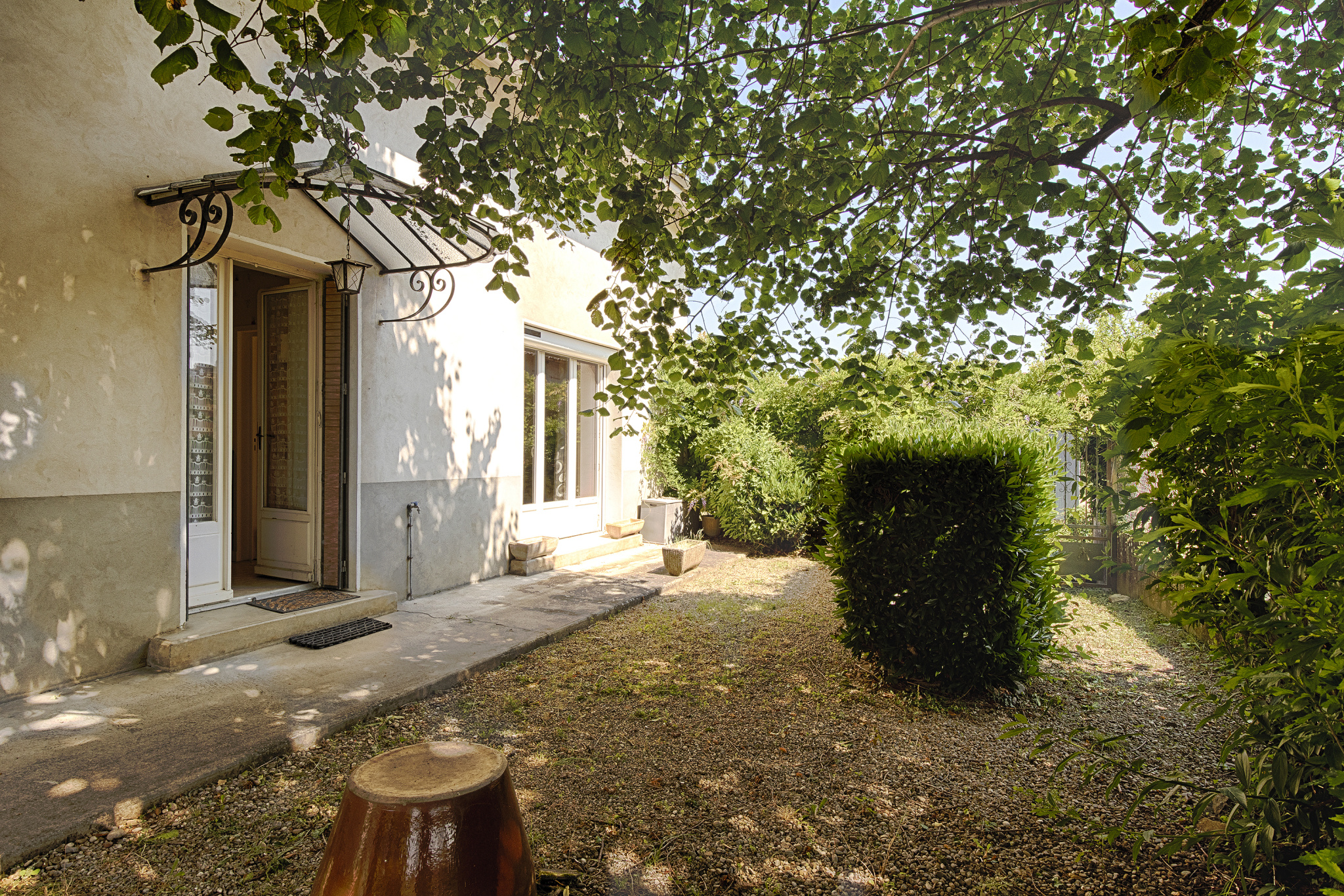 Au rez de chaussée une entrée qui dessert une buanderie et un premier garage. Nous avons aussi une cave et un deuxième garage de 25 m2.