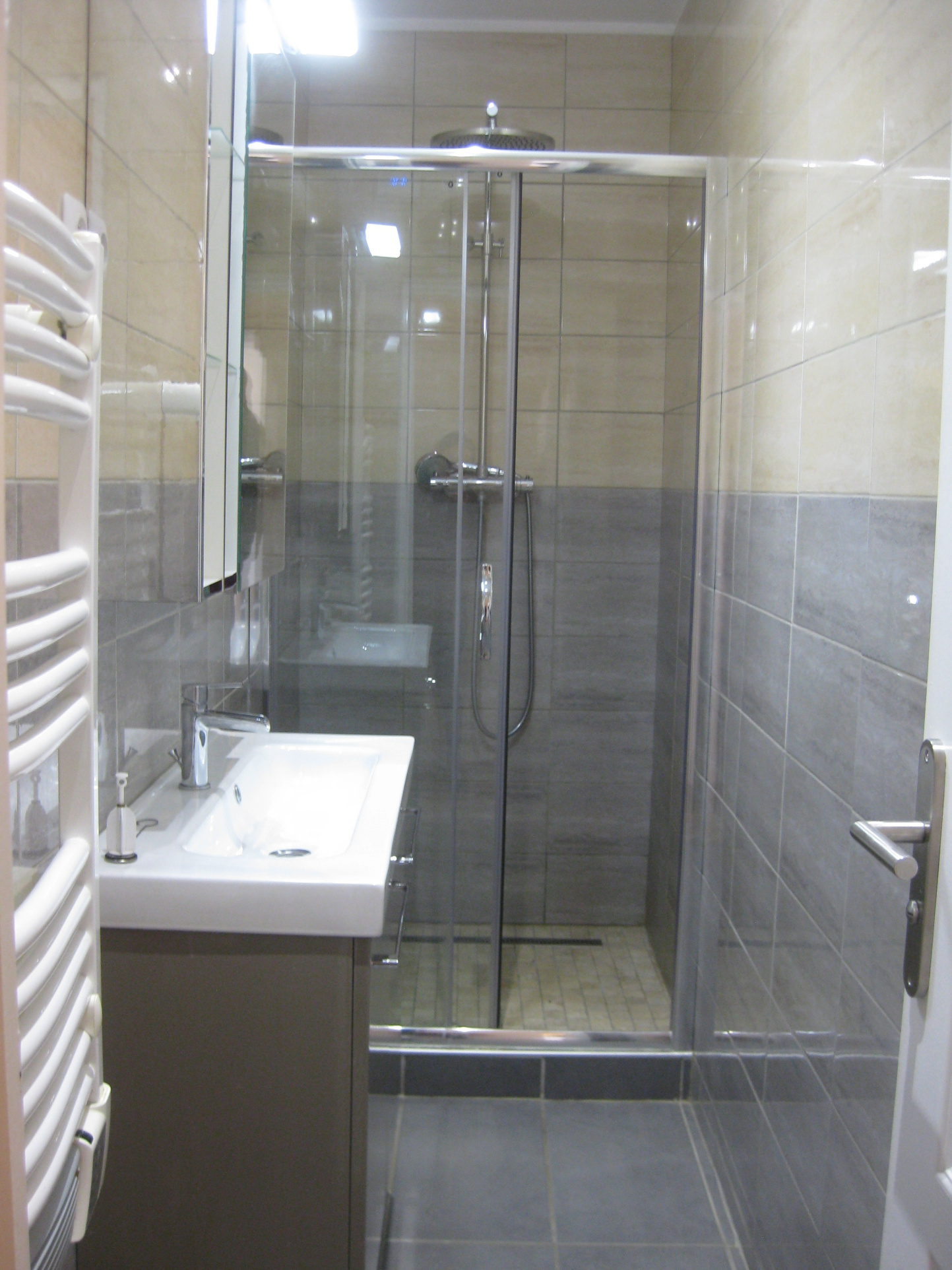 La production d'eau chaude est gérée par un chauffe-eau plat récent et astucieusement positionné.
