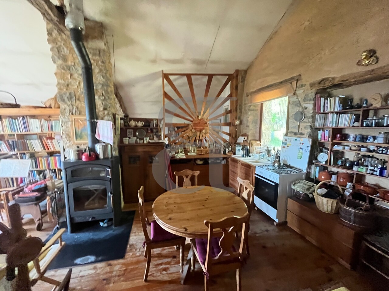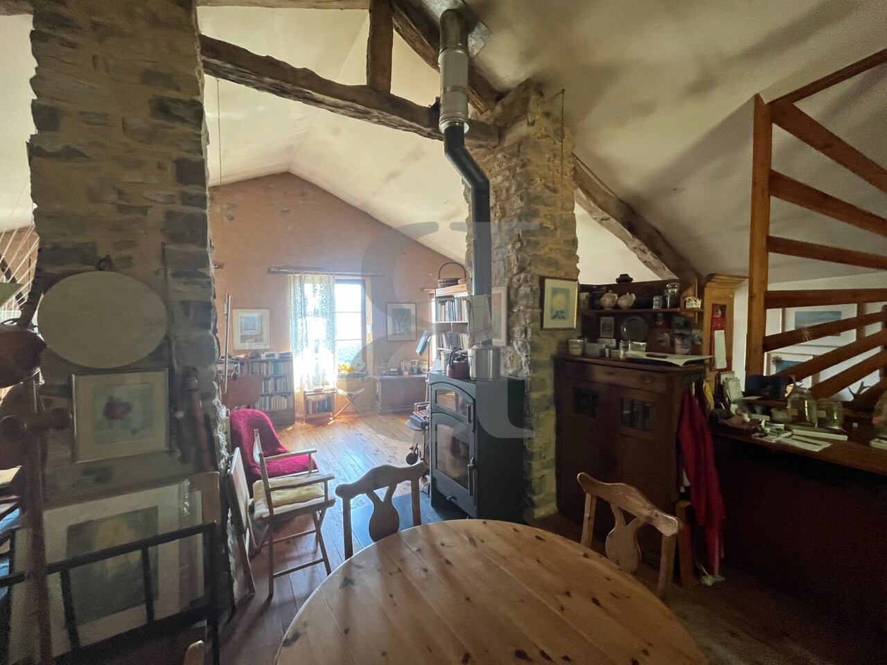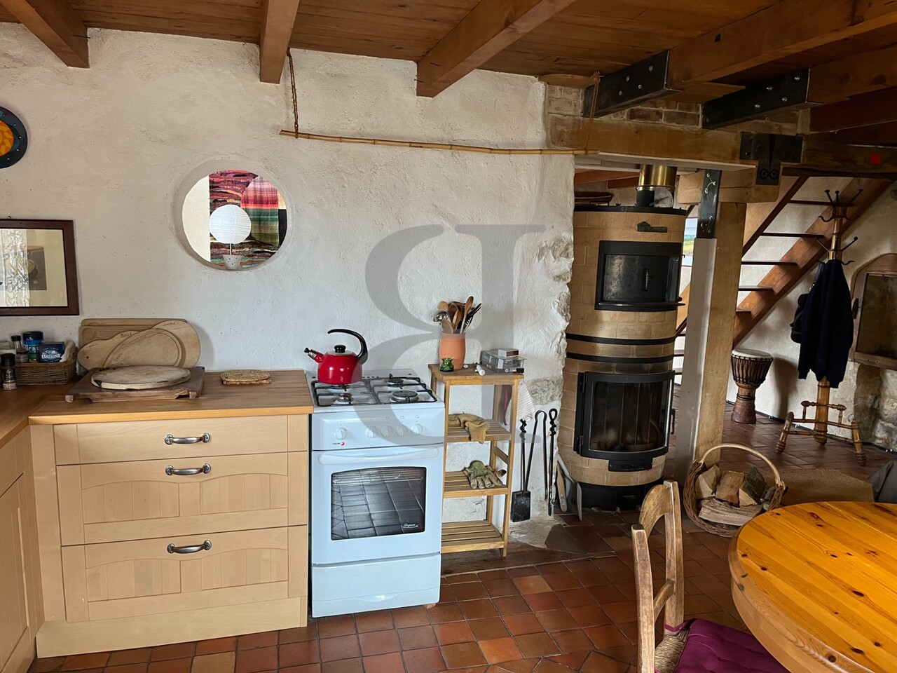 Cuisine salle à manger salon avec poêle à bois 67 m²