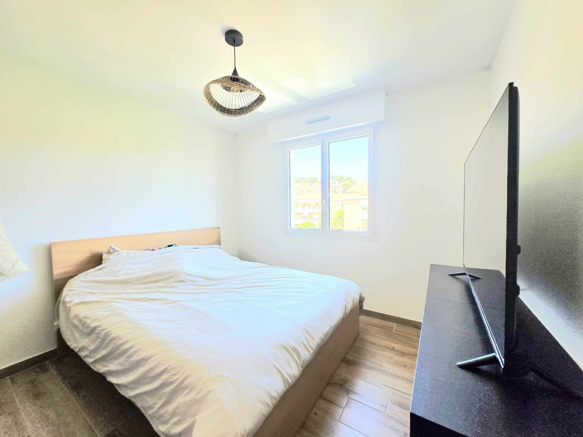 L'appartement dispose de deux chambres, d'une salle d'eau moderne, et bénéficie d'une place de parking privative.