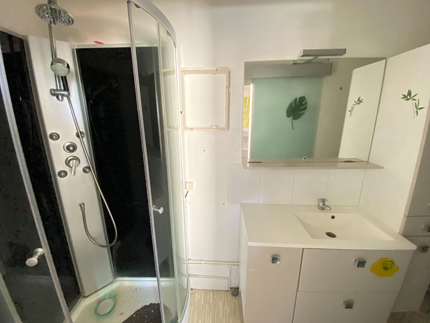 Au 1er étage : Appartement T3 accessible par un escalier extérieur, comprenant une pièce de vie lumineuse avec cuisine aménagée, 2 chambres, salle d'eau et WC séparé.