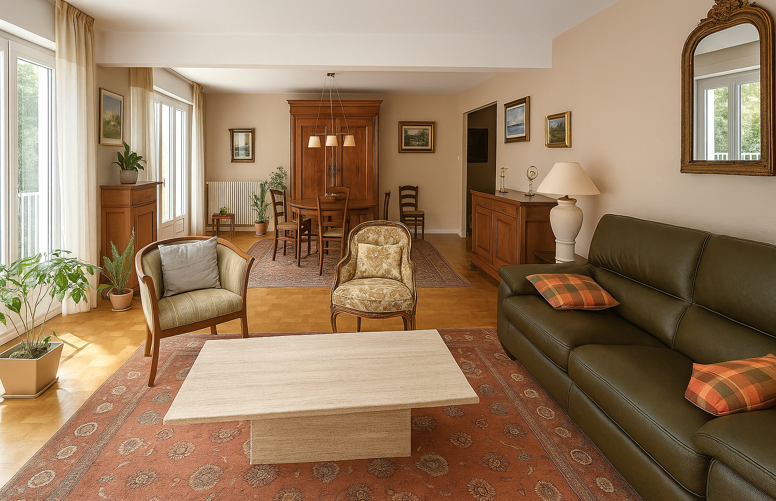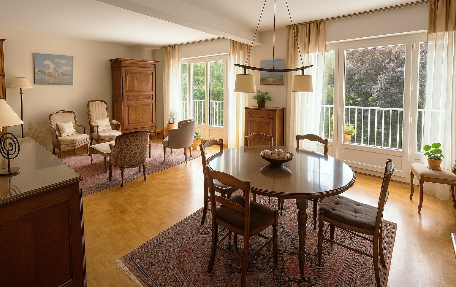 Idéalement situé au 2ème étage d'une résidence de standing (construction LANG), cet appartement de 94 m² vous séduira par son environnement privilégié et son agencement soigné. Niché au coeur d'un parc privé de 3 500 m², fleuri et entretenu par les résidents, il offre un cadre de vie calme, verdoyant et sans aucune autre construction visible.