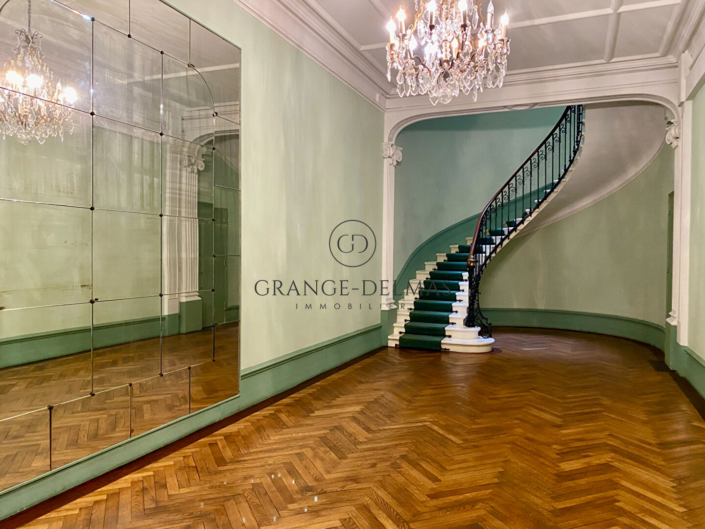 Il s'ouvre sur une vaste entrée avec placard et puits de jour qui dessert un bureau (pouvant faire office de chambre) et la réception de 50m² baignée de lumière par 3 grandes fenêtres offrant une vue dégagée sur le Jardin Public. Salle à manger et cuisine indépendante côté rue.