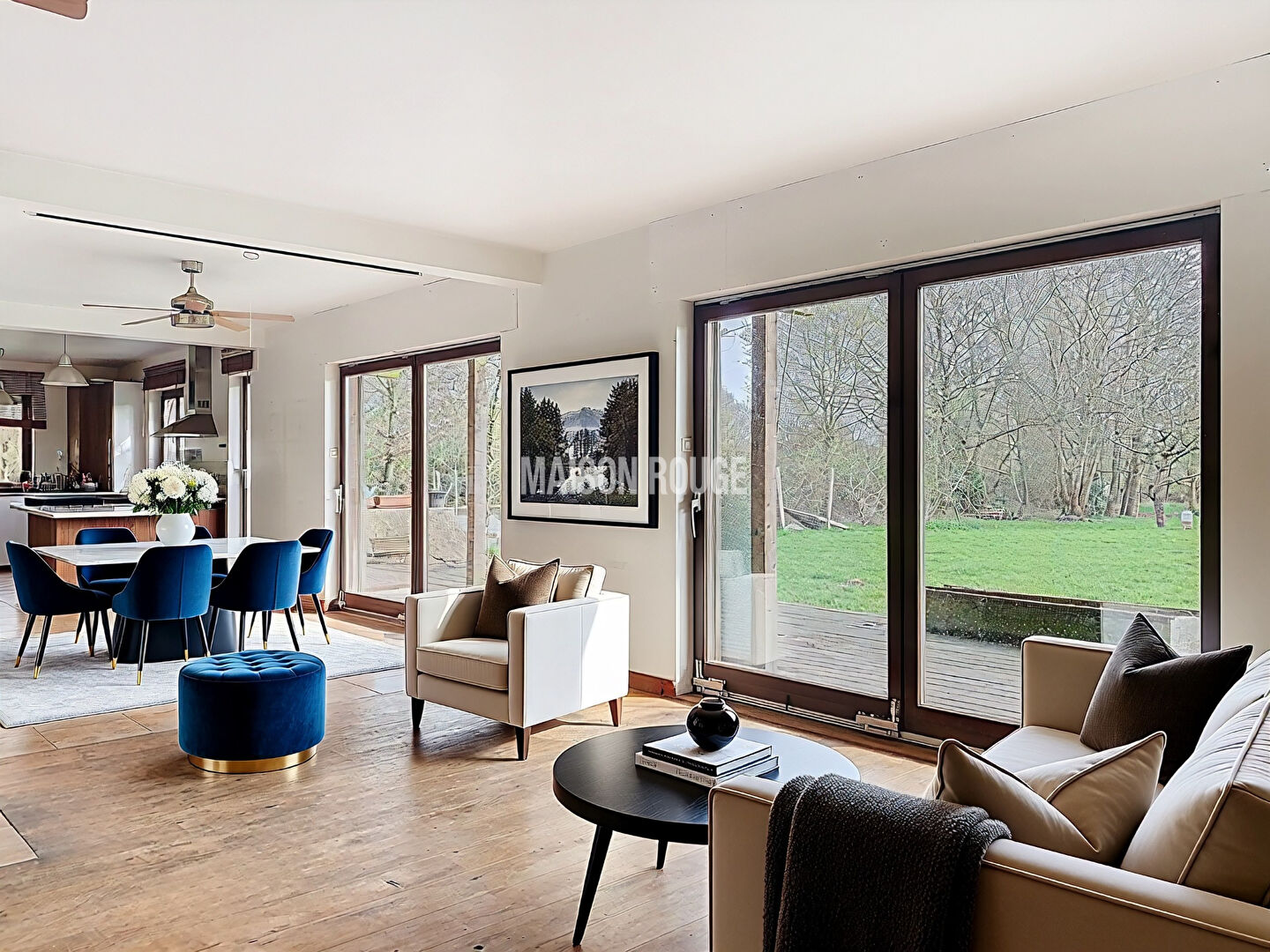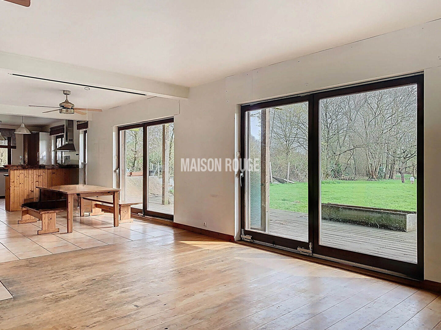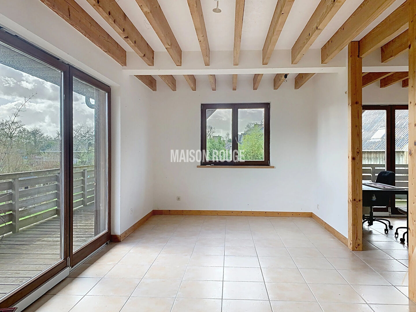 Au RDC, vous découvrirez un salon salle a manger avec poêle a bois ouvrant sur une grande terrasse bois qui surplombe le jardin arboré. L'ambiance chaleureuse avec de grandes baies vitrées offrant une vue dégagée sur le jardin, La cuisine ouverte, entièrement aménagée , une salle de bain avec douche italienne et un wc et trois chambres.
