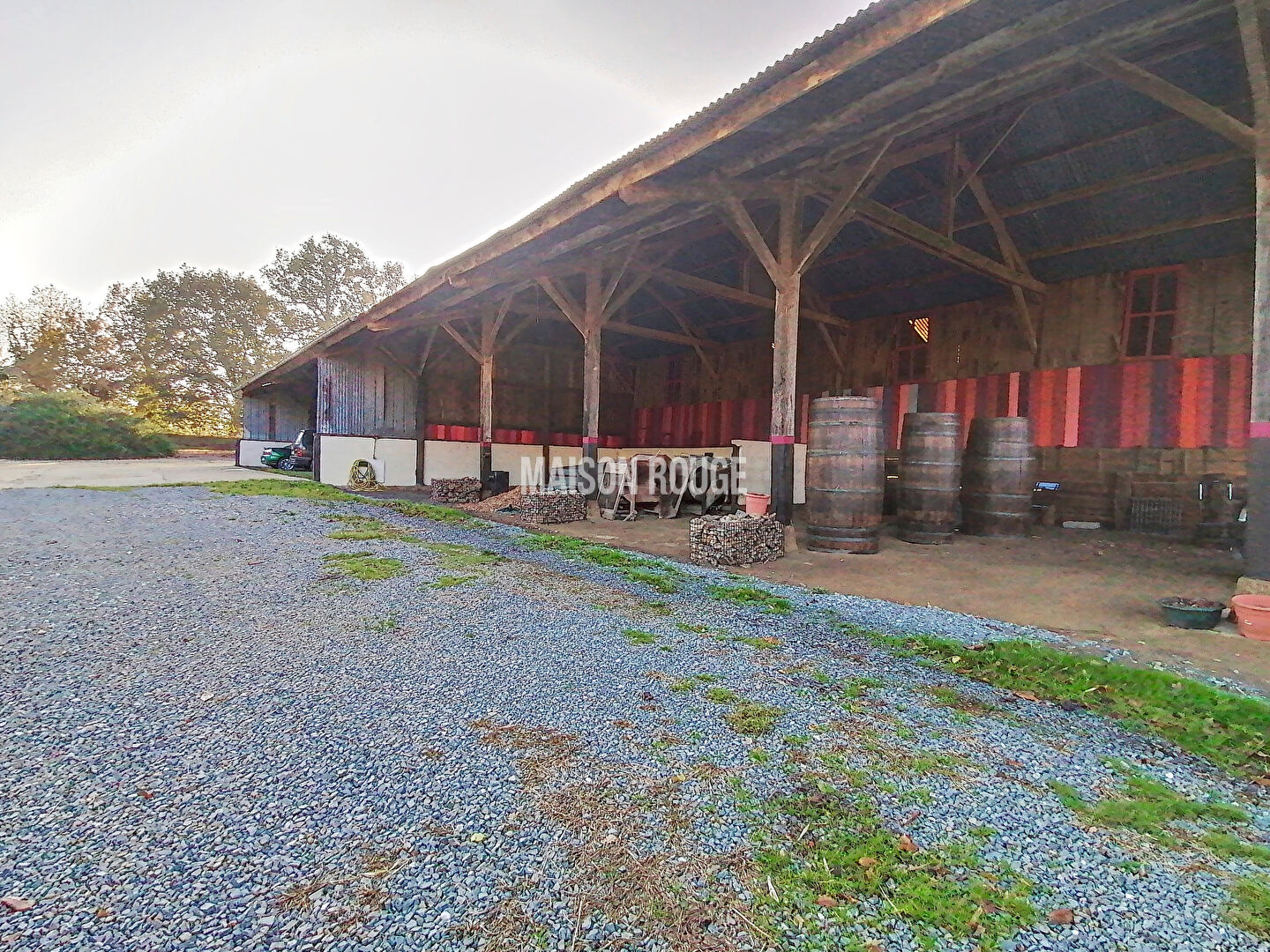 Le tout est agrémenté d'un beau terrain arboré d'environ 7400 m² et d'un carport, d'une grange, un atelier, deux abris de jardin, et d'un hangar agricole de 550 m², un second de 380 m², et un troisième fermé de 170 m².