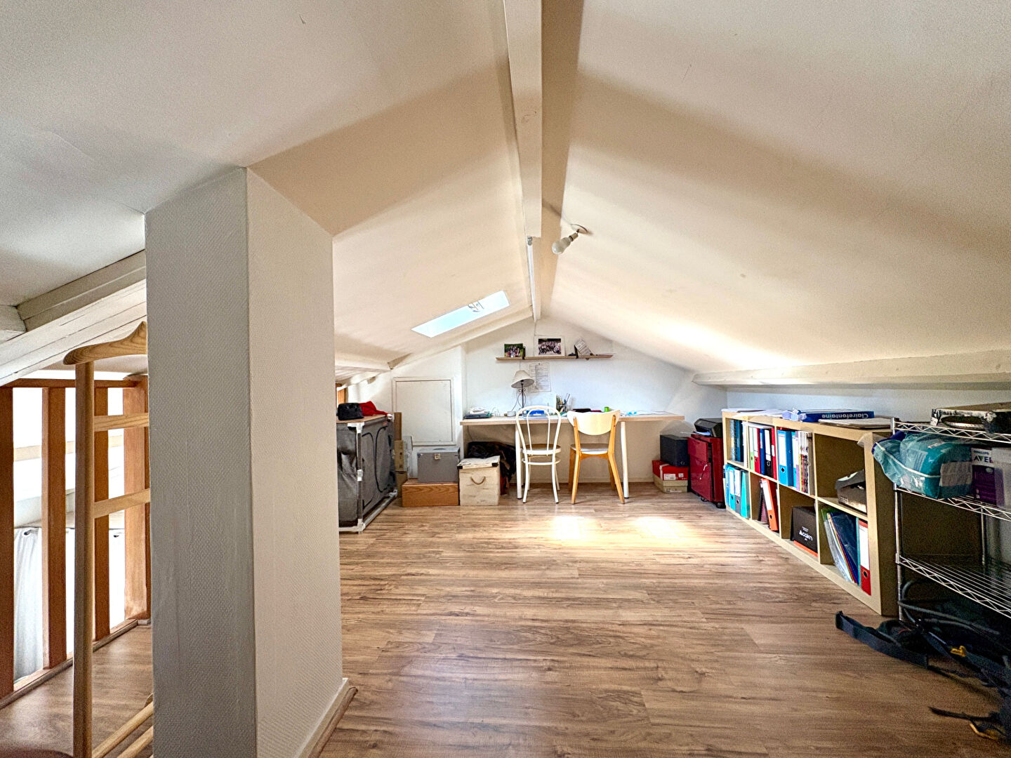 Une mezzanine pouvant faire office de bureau, d'espace lecture ou de chambre d'amis,