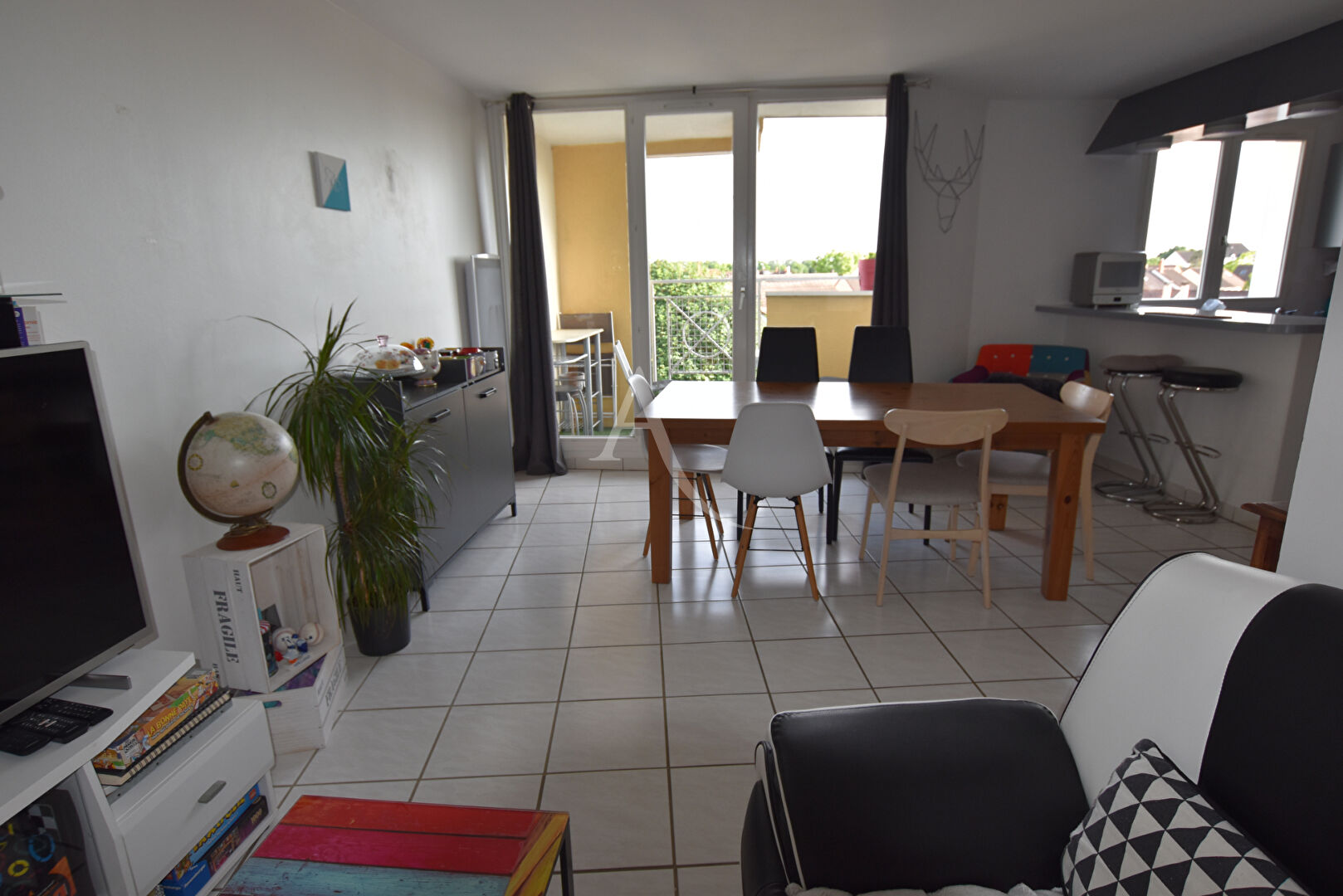 Appartement lumineux exposé Sud : grande pièce à vivre de 21m2, cuisine ouverte entièrement équipée et aménagée, WC séparé, entrée et balcon sans vis à vis.