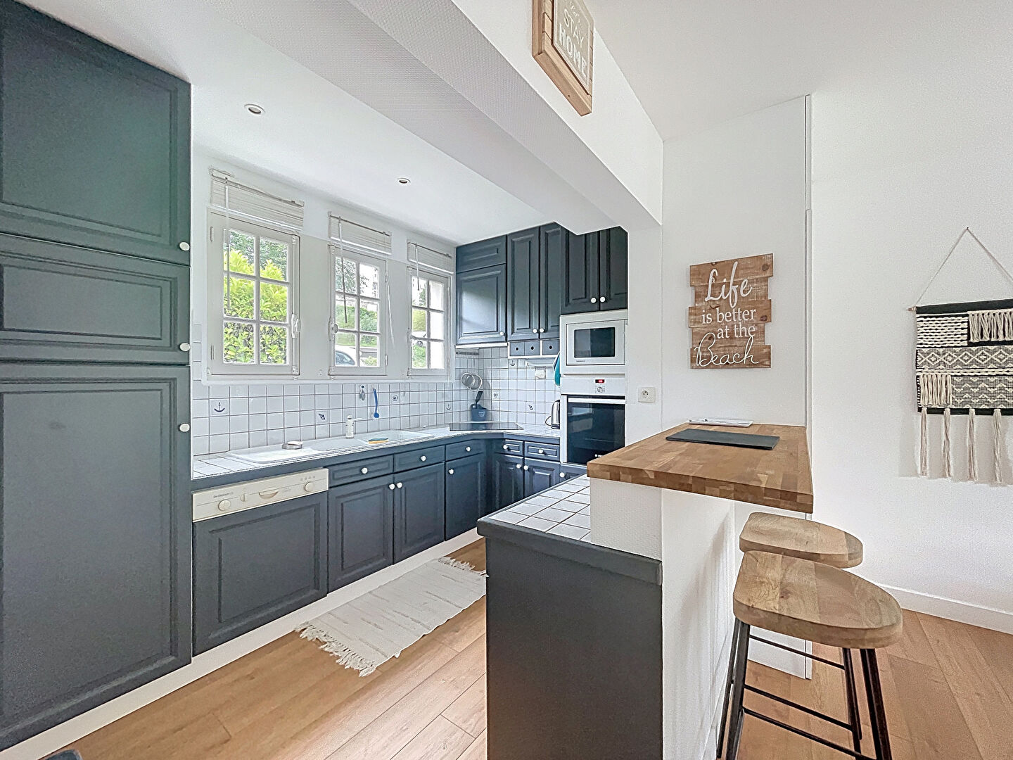 Une cuisine aménagée et équipée ouverte sur la salle à manger