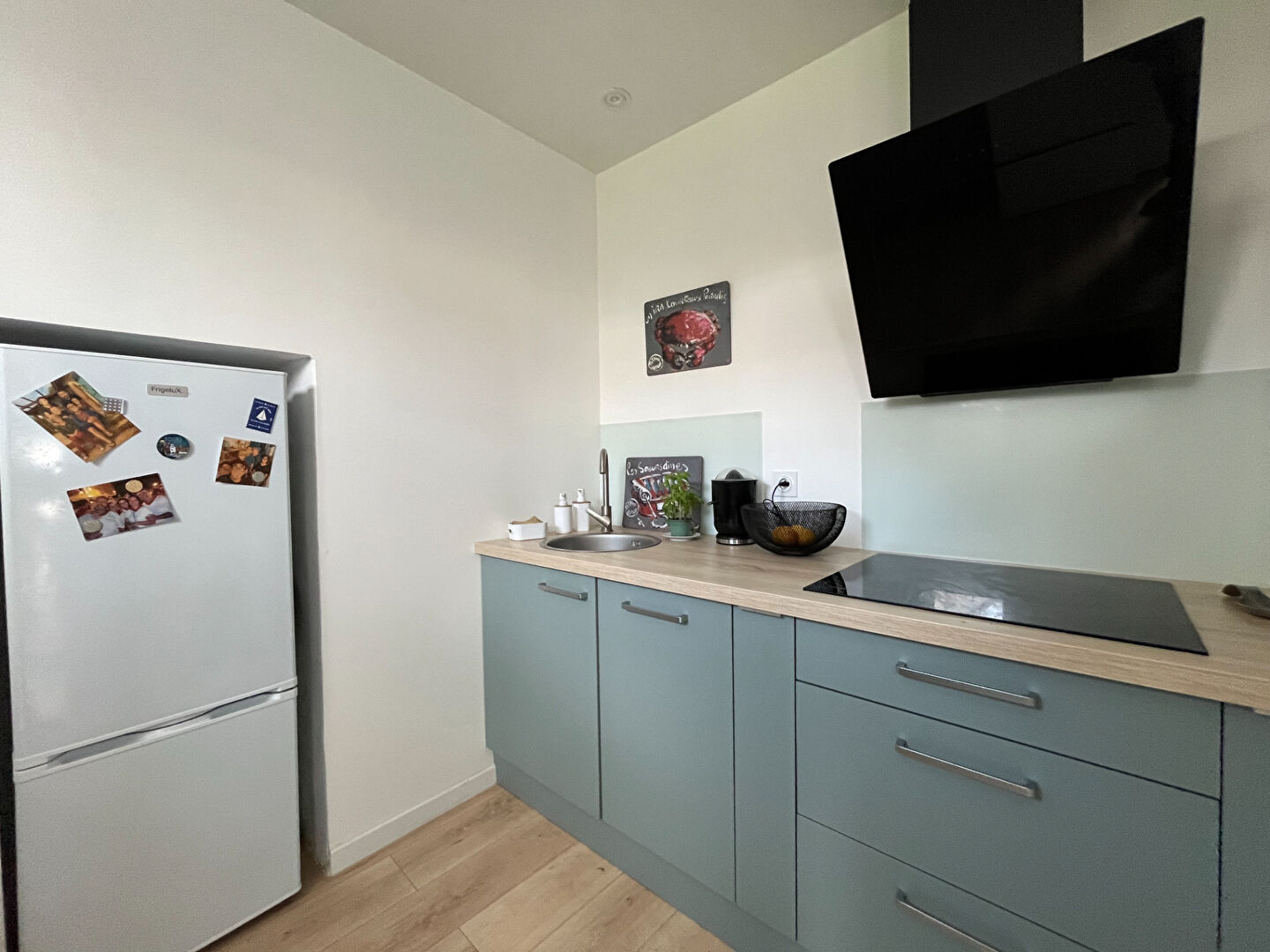A l'étage: palier-dégagement 1,70 m², salle d'eau/wc de 4 m² avec douche à l'italienne, deux chambres de 9 m² et 10 m², dont une avec placard/dressing, coin bureau-placard, coin TV.