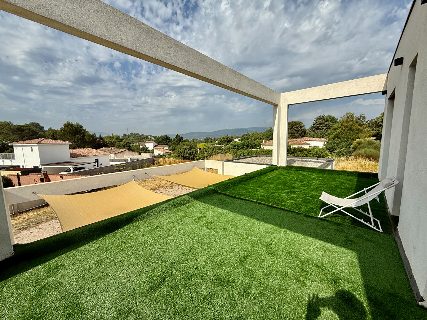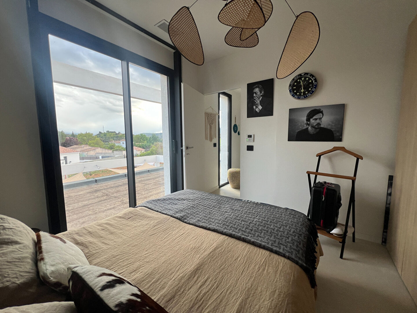 À l'étage, l'espace nuit se compose de deux chambres supplémentaires et d'un dégagement menant directement à une superbe terrasse offrant une vue imprenable sur la Sainte-Baume.