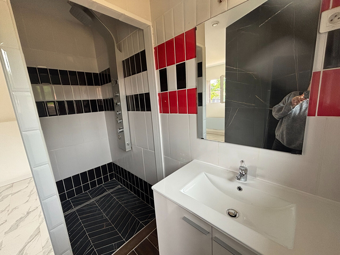 La maison comprend trois chambres, dont une suite parentale avec dressing et salle d'eau privative, offrant un confort optimal. Vous y trouverez aussi une salle de bain spacieuse avec baignoire et doubles vasques, ainsi qu'un WC séparé pour plus de praticité.