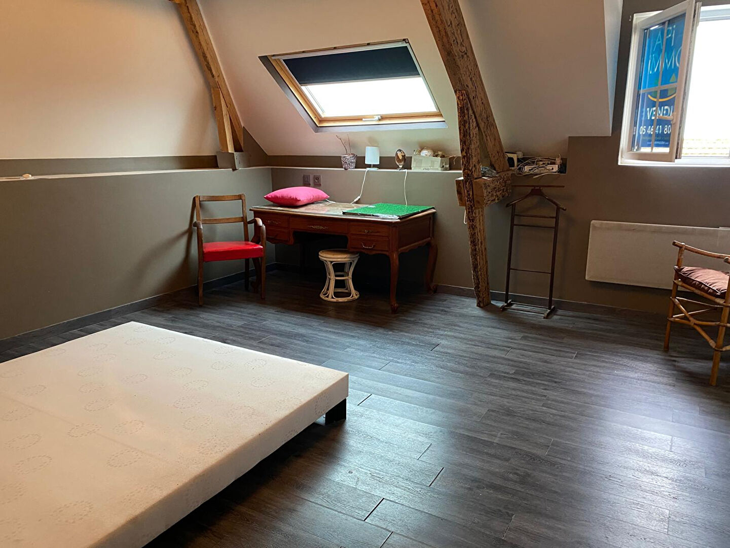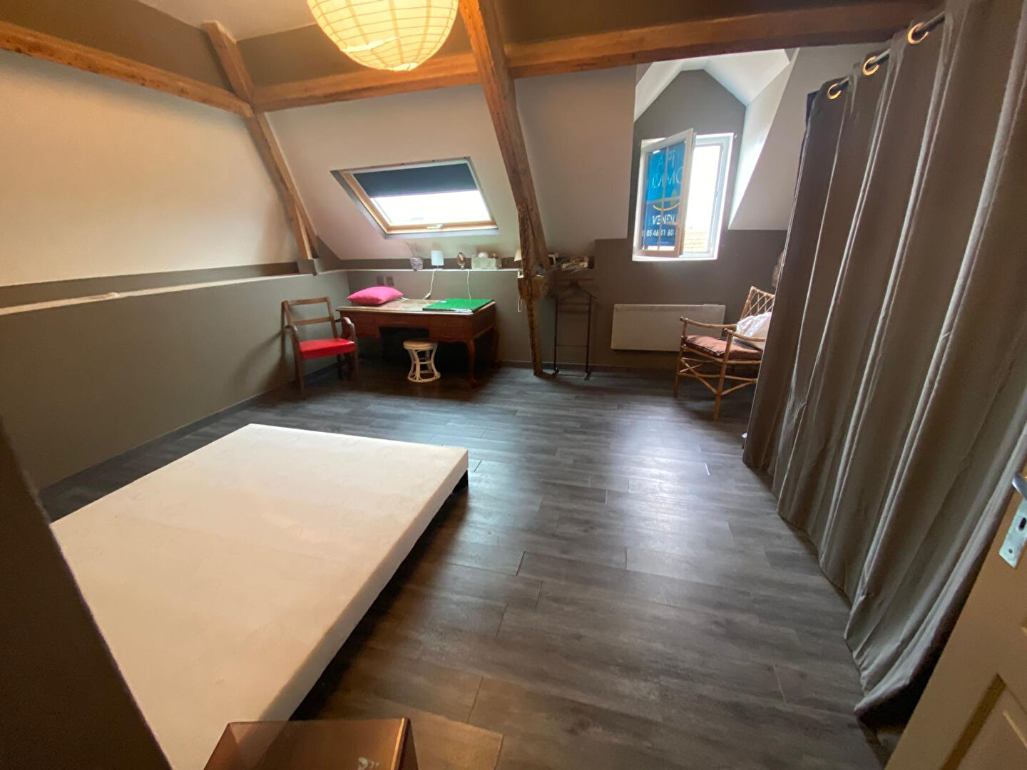 Dans rue prisée de Chatelaillon Plage, immeuble 1930 situé au 2° étage appartement en duplex sous comble comprenant entrée, vaste séjour avec coin cuisine aménagée et équipée , deux chambres spacieuses SDE, WC.