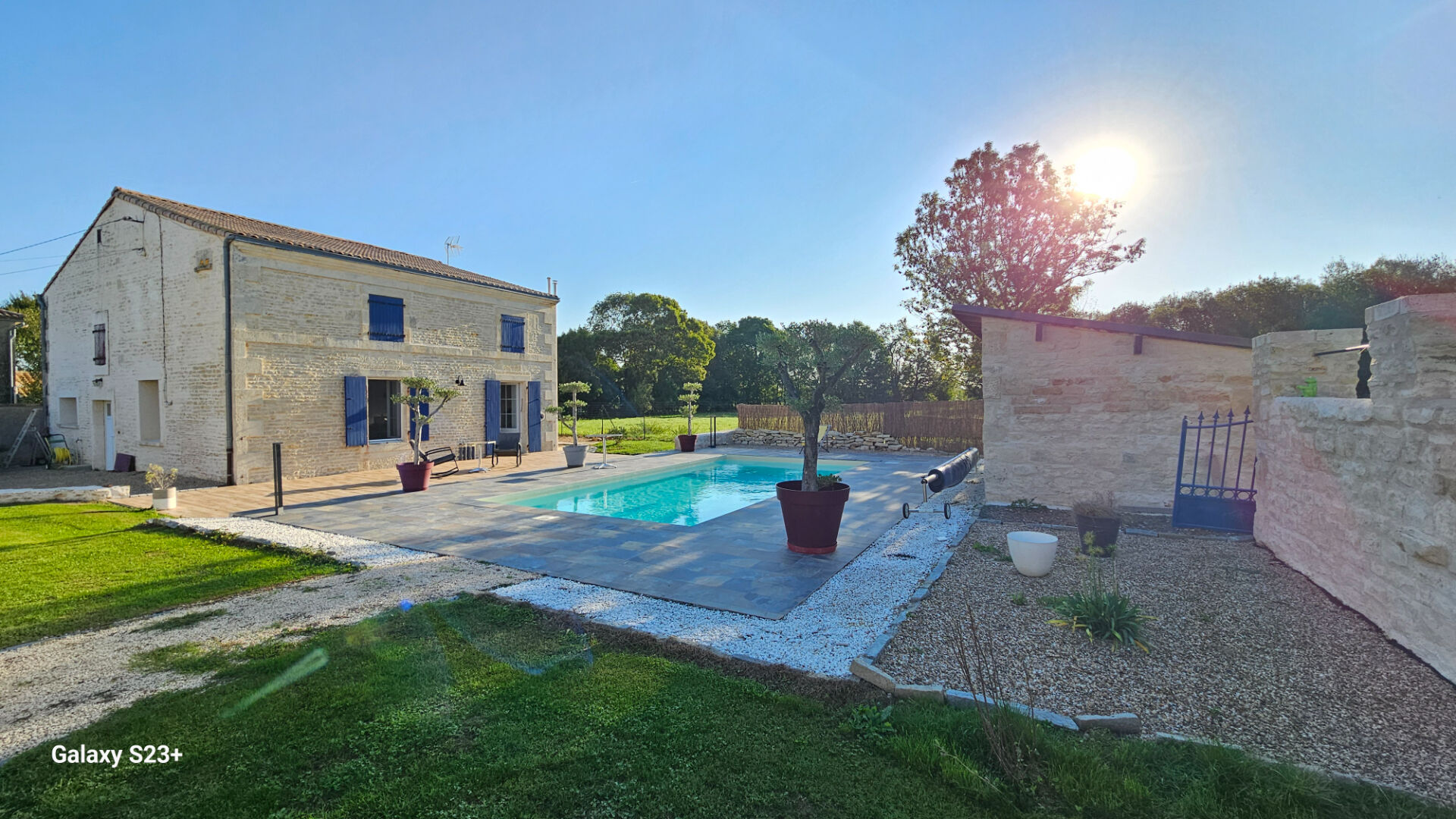 Exclusivité ! Marigny, coup de coeur assuré pour cette magnifique maison en pierre entièrement rénovée d'env. 105 m² hab., comprenant au rez-de-chaussée : entrée/ dégagement, salon-séjour-cuisine équipée, 1 chambre, salle d'eau avec douche italienne, WC. A l'étage : mezzanine avec espace bureau, 2 chambres + la possibilité de créer 2 autres chambres dans le grenier. Piscine 8x4m avec grande terrasse dallée de 120 m², préau en pierre, abri de jardin, emplacement de parking pour y stationner 3 à 4 voitures. L'ensemble sur un terrain clos de 1443 m². Dans un environnement paisible à seulement 20 min du centre ville de Niort et à 5 kms de l'autoroute A10. Arrêts de bus à proximité de la maison.