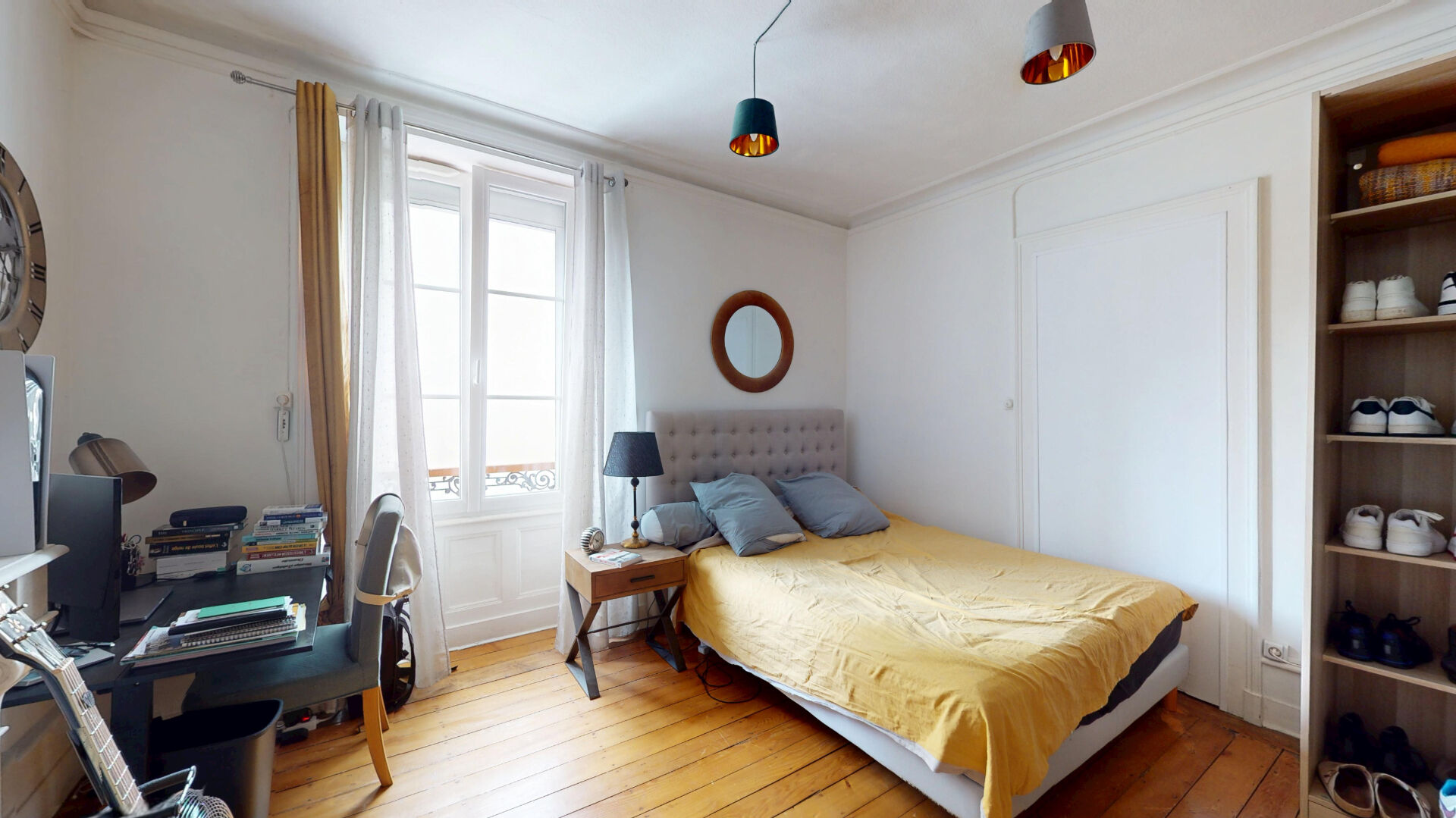 Il se compose d'une entrée, d'un séjour lumineux, d'une cuisine semi-ouverte prolongée d'un cellier, de deux grandes chambres, ainsi que d'une pièce attenante au séjour pouvant faire office de salon, de bureau ou de troisième petite chambre. L'appartement dispose également d'une salle d'eau, de toilettes indépendantes, d'une cave et d'un grenier.