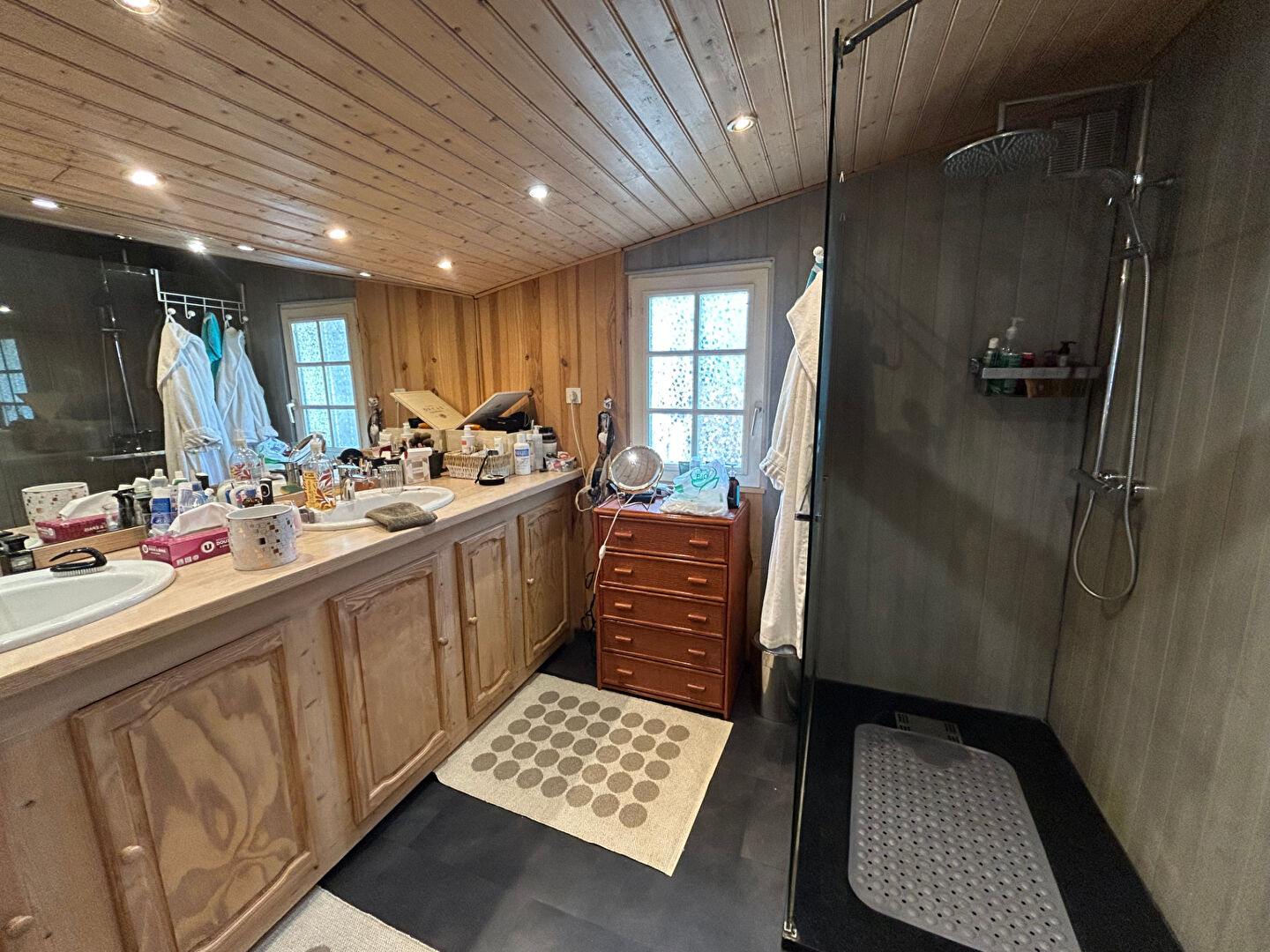 Elle se compose d'un séjour lumineux, d'une cuisine aménagée et équipée, de deux chambres, d'une salle d'eau avec double vasque, de WC séparés, ainsi que d'une buanderie.