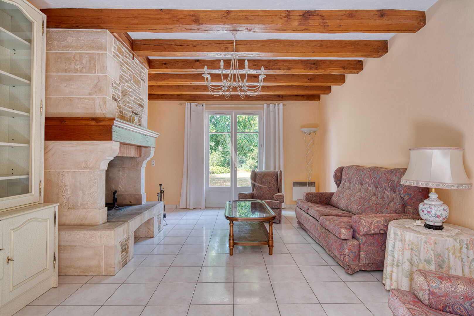 De plain-pied, profitez d'une pièce de vie chaleureuse avec cheminée, cuisine aménagée et équipée, chambres confortables, garage double et cave.