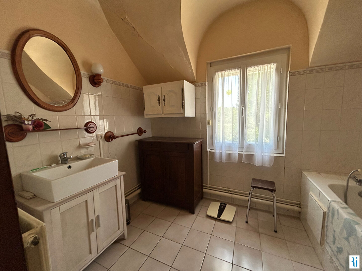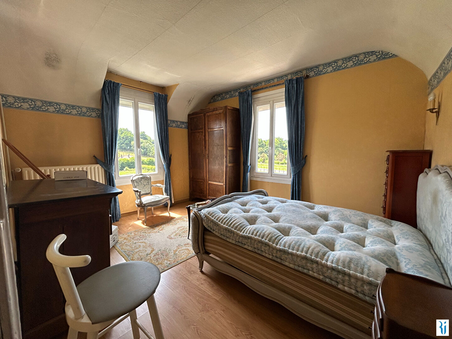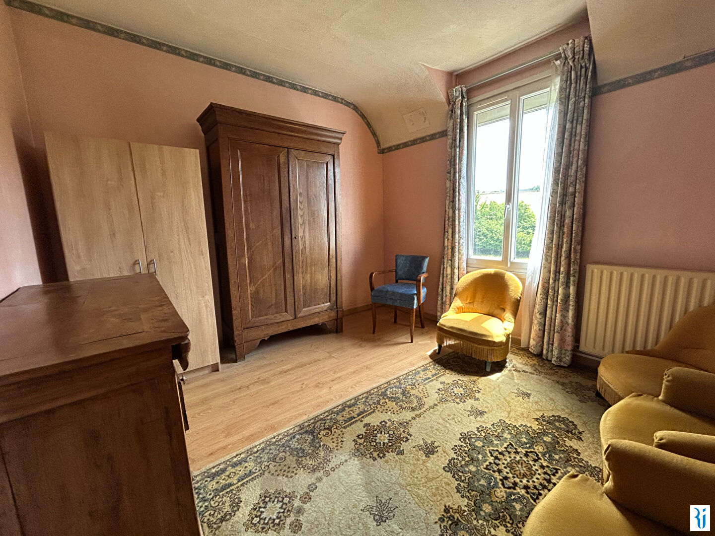 - au premier étage : un palier dessert 2 grandes chambres et 2 chambres mansardées, une salle de bains et un wc.