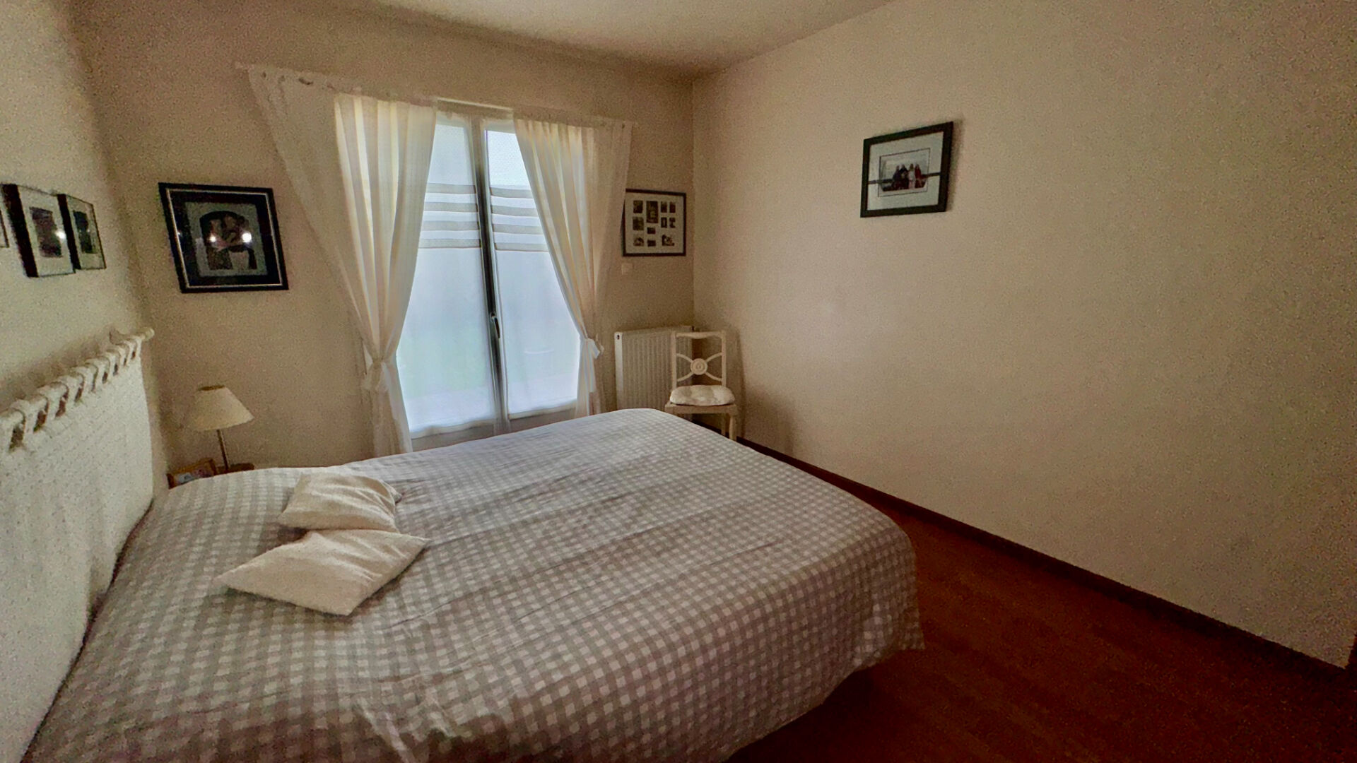 Trois chambres , un dressing aménagé et une salle de bains .