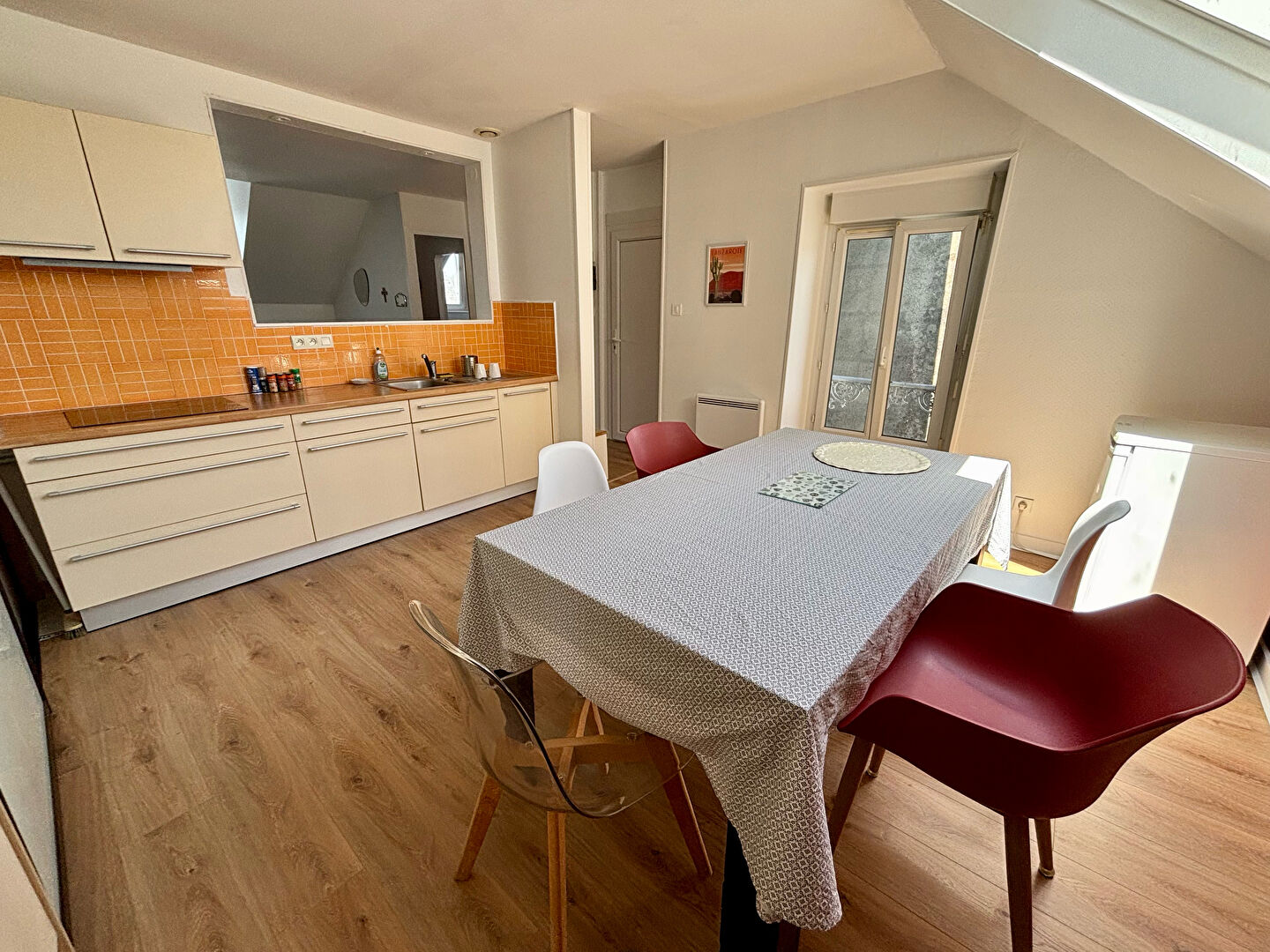 NOUVELLE EXCLUSIVITÉ, Quimper centre ville piéton, proche futurs halles, bel appartement T2, rénové, offrant une entrée, salon, cuisine équipée avec repas, sdb et wc, coin nuit à l'étage. Une rénovation agréable, décoration soignée, un excellent placement !