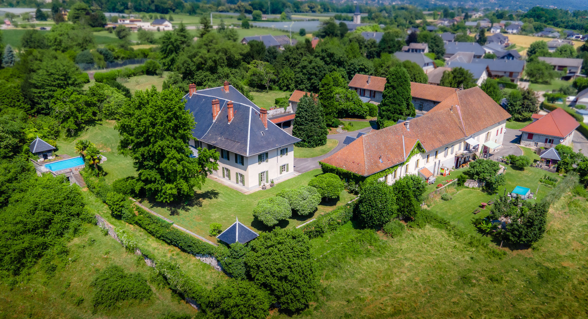 En complément 900m2 de dépendances aménagées en 8 appartements actuellement loués 95000Euro/an. Un domaine unique à seulement 45 min de l'Aéroport de Lyon ou Genève.