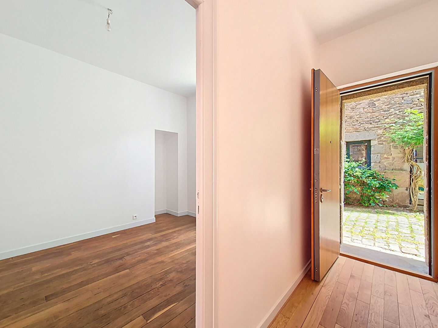 En impasse au calme et en hyper centre de Dinan, à deux pas du théâtre, des monuments ( Tour de l'horloge, Place saint Sauveur) des commerces, maison en pierre rénové en 2012 offrant une surface habitable d'environ 188 m² avec cour privative et deux garages.