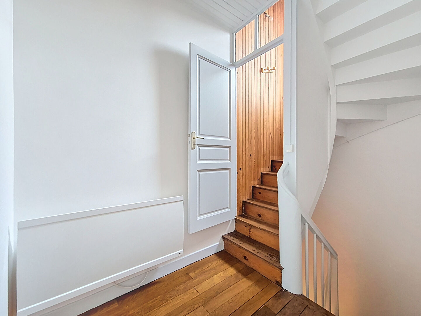 - au rez-de-chaussée : entrée, cuisine équipée neuve, séjour-salon avec accès sur cour, espace détente à aménager en salon, bibliothèque ou bureau, chambre avec placard, salle d'eau et toilettes