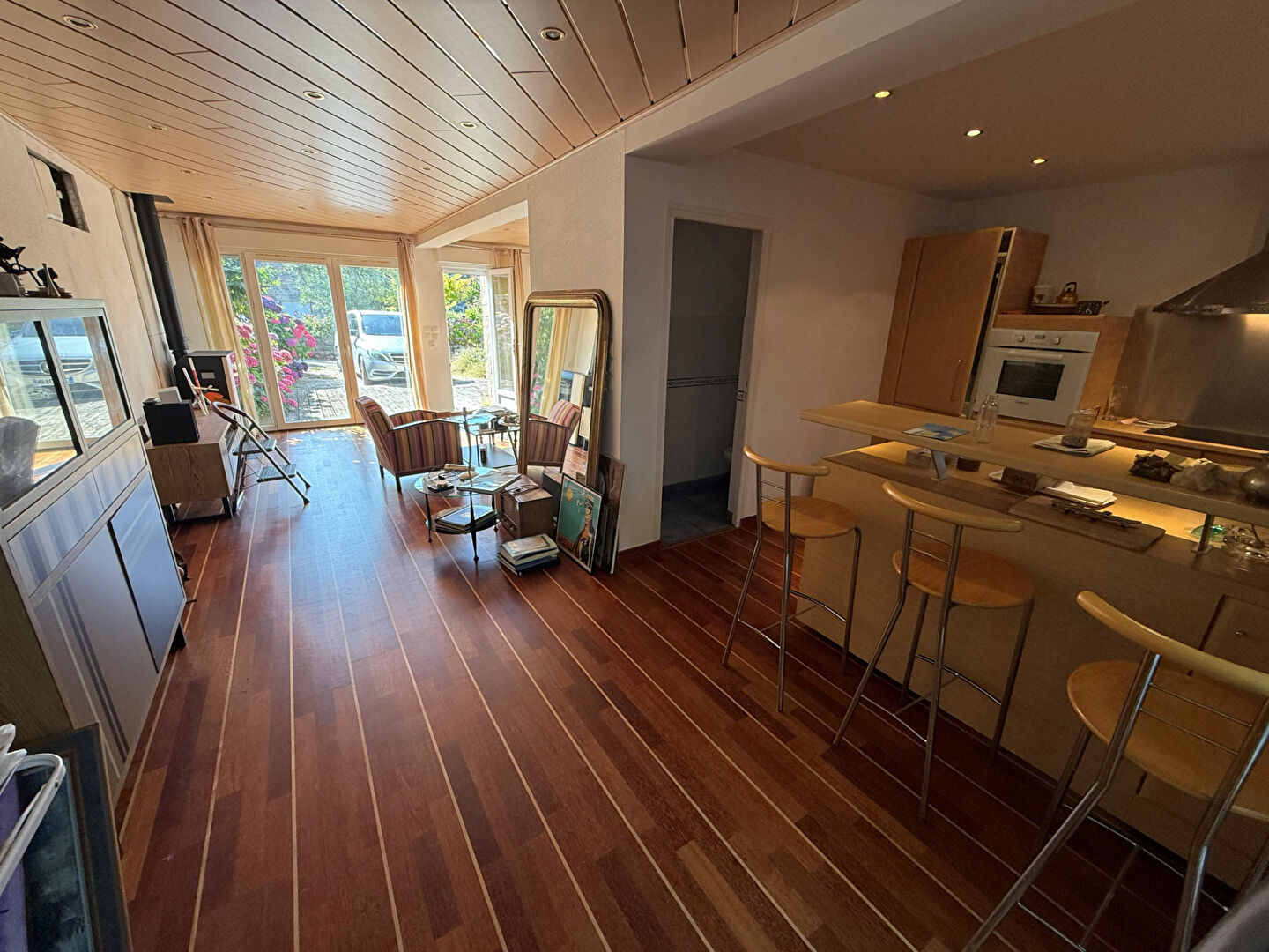 Maison avec une petite vue sur le vieux pont du BONO, maison indépendante comprenant : au rez-de-chaussée : un séjour salon d'environ 36 m² avec un poêle à granulés, une cuisine aménagée et équipée, un wc, une véranda, à l'étage : 3 chambres avec nombreux rangements, une salle de bains avec placard, un wc.