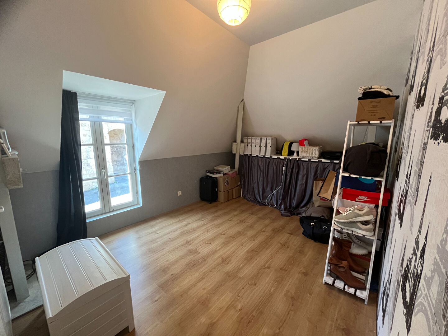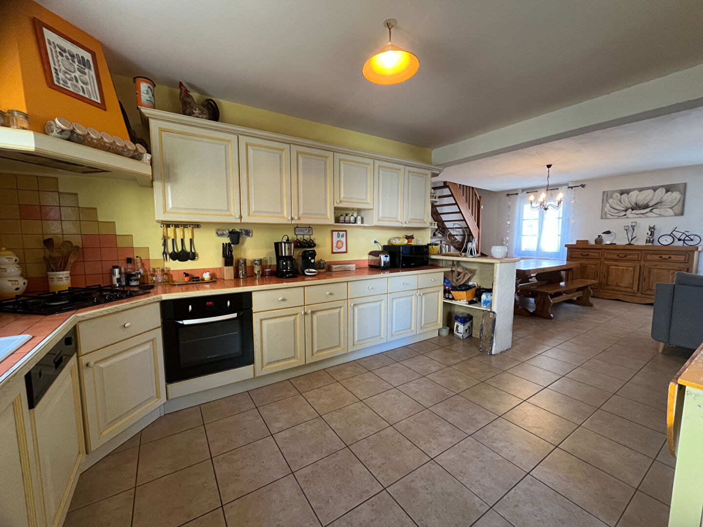 La maison attenante est lumineuse et chaleureuse. Elle s'ouvre sur un vaste séjour avec poêle à bois et une cuisine ouverte aménagée et équipée. Une salle d'eau et des WC séparés complètent le rez-de-chaussée. À l'étage, trois chambres dont une spacieuse de 15 m², un dressing et un second WC avec lavabo offrent un espace nuit confortable.