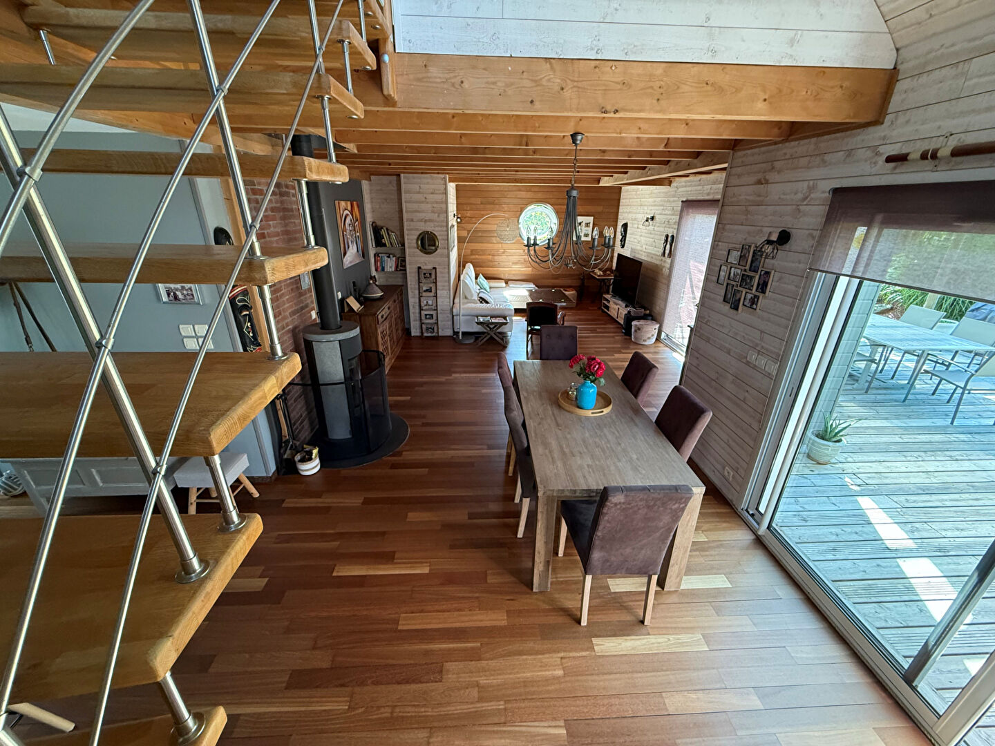 A 12 minutes de VANNES et 10 minutes d'AURAY, charmante Maison ossature bois sur un terrain de 1000 m² au calme et sans vis à vis comprenant : au rez-de-chaussée : une cuisine ouverte aménagée et équipée, un séjour avec poêle à bois donnant sur une grande terrasse en bois exposée Sud, une chambre avec salle d'eau, un wc avec lave-mains, un cellier, à l'étage: un palier avec rangements, 2 chambres dont une avec placard, une salle de bains / wc.