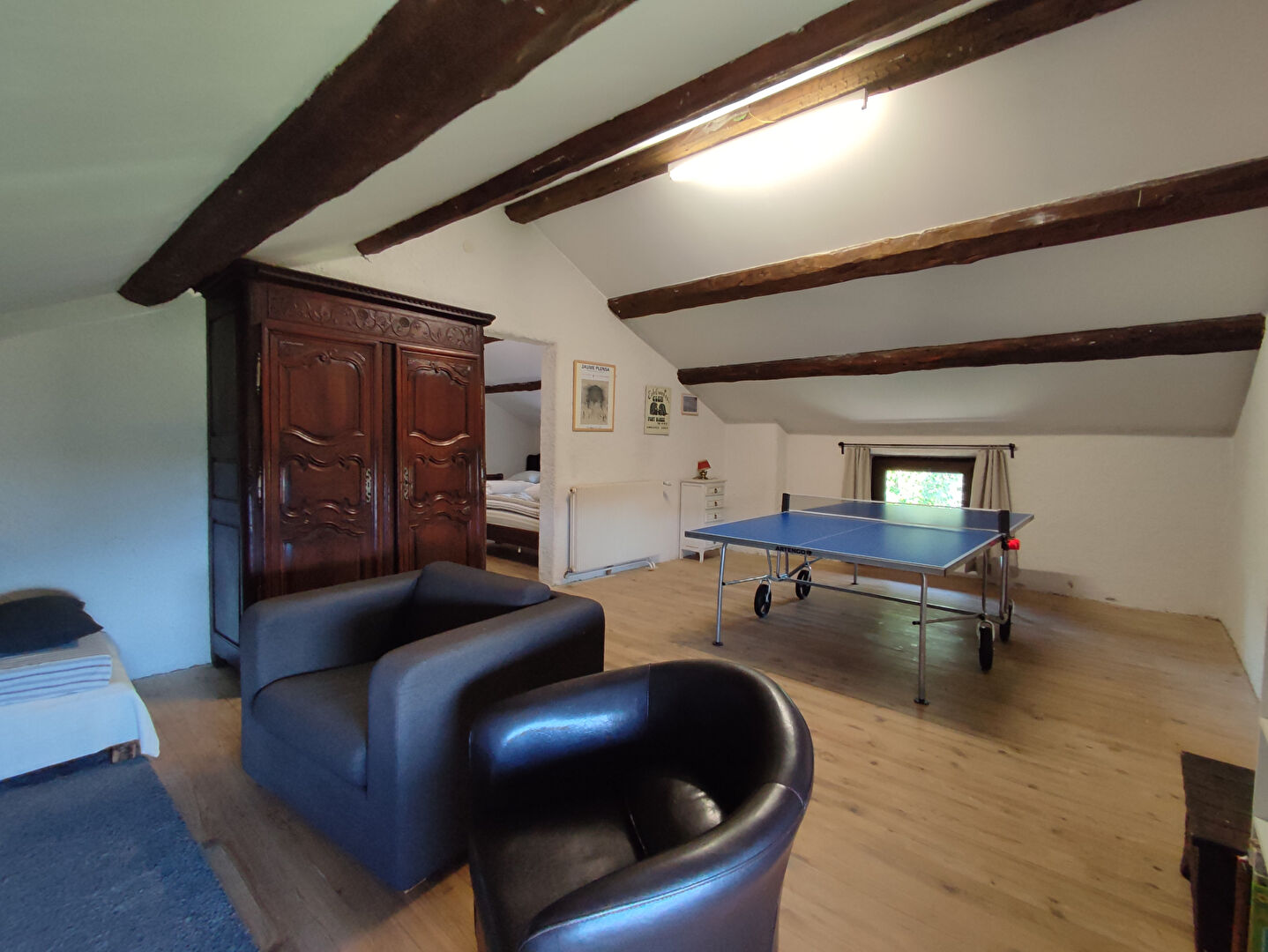 - Dernier niveau: Une grande salle de jeux / salon TV, dortoir ouvert, une petite chambre ou bureau, une grande chambre avec lavabo, salle d'eau avec WC